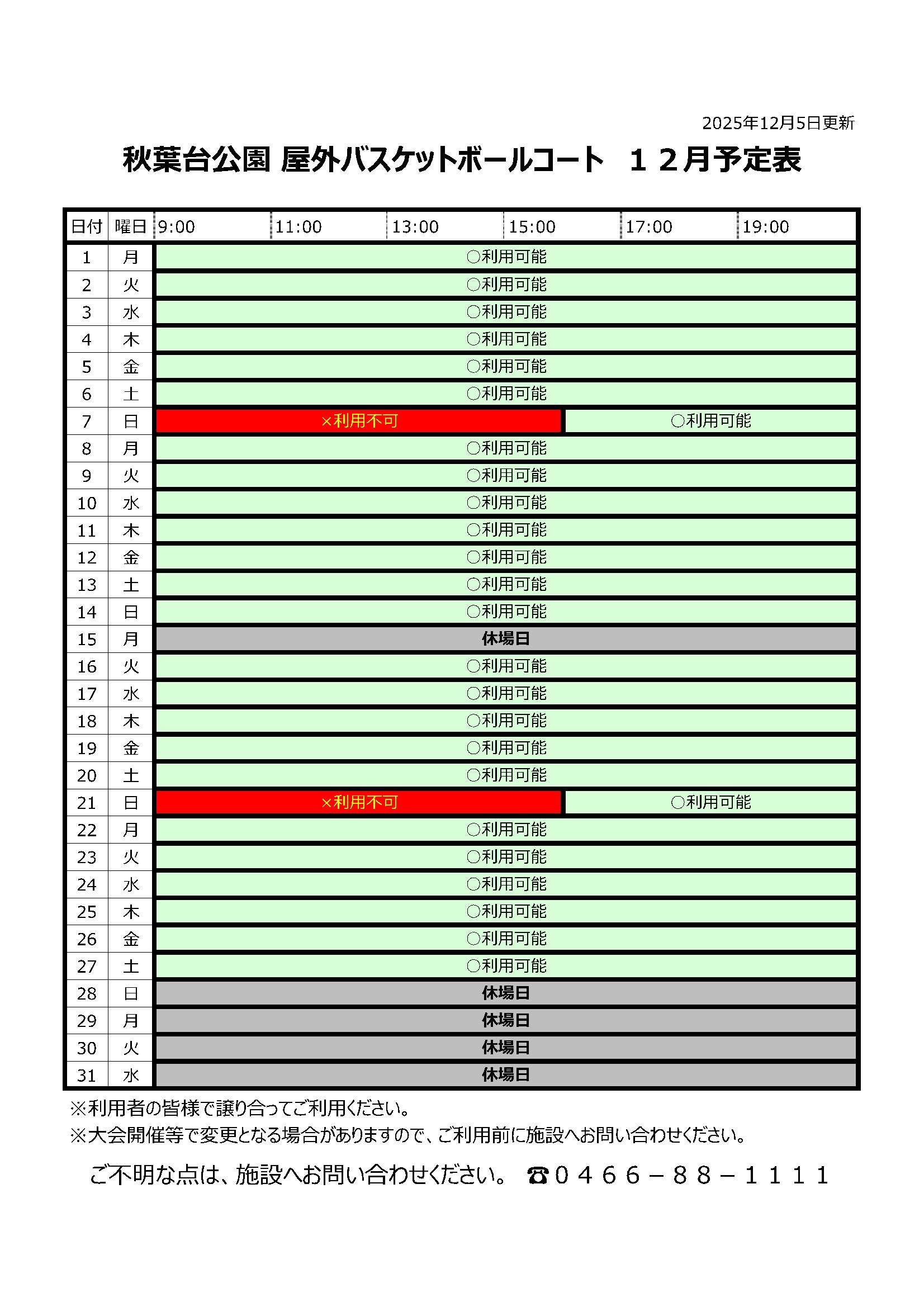 問い合わせ先:秋葉台運動施設事務所 TEL.0466-88-1111