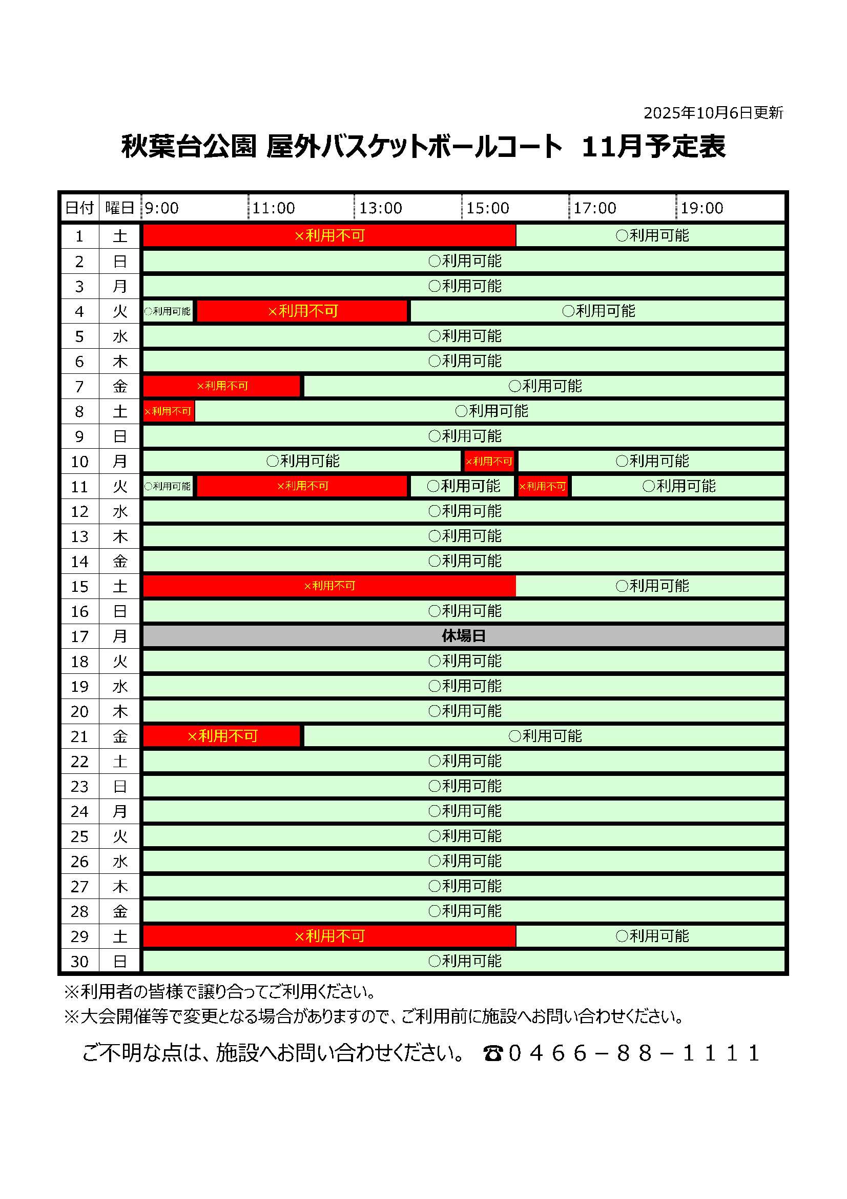 問い合わせ先:秋葉台運動施設事務所 TEL.0466-88-1111