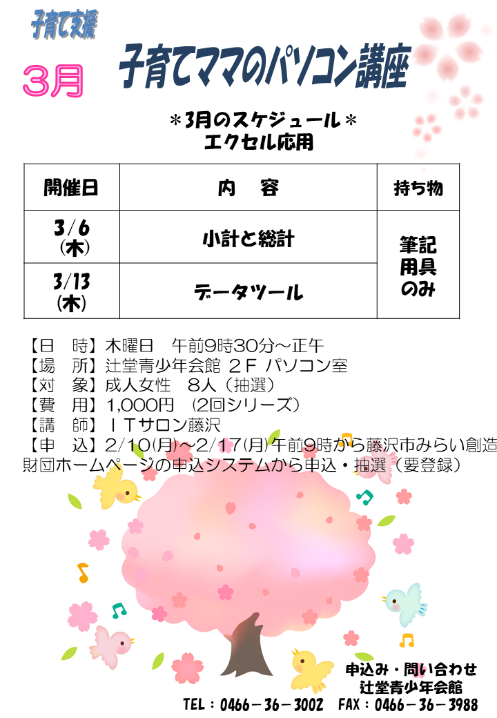 辻堂青少年会館「子育てママのパソコン講座 3月(全2回シリーズ) 」