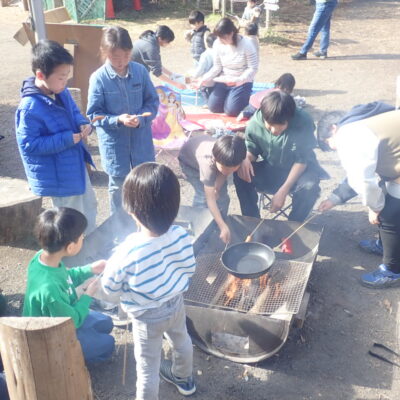プレーパークでは自分でたき火をすることができます(木材集め、マッチで火起こしなど)
