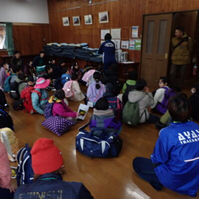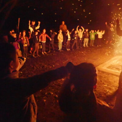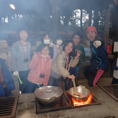 森の春(自然)探し、野外炊事、キャンプファイア、グループワーク等の活動