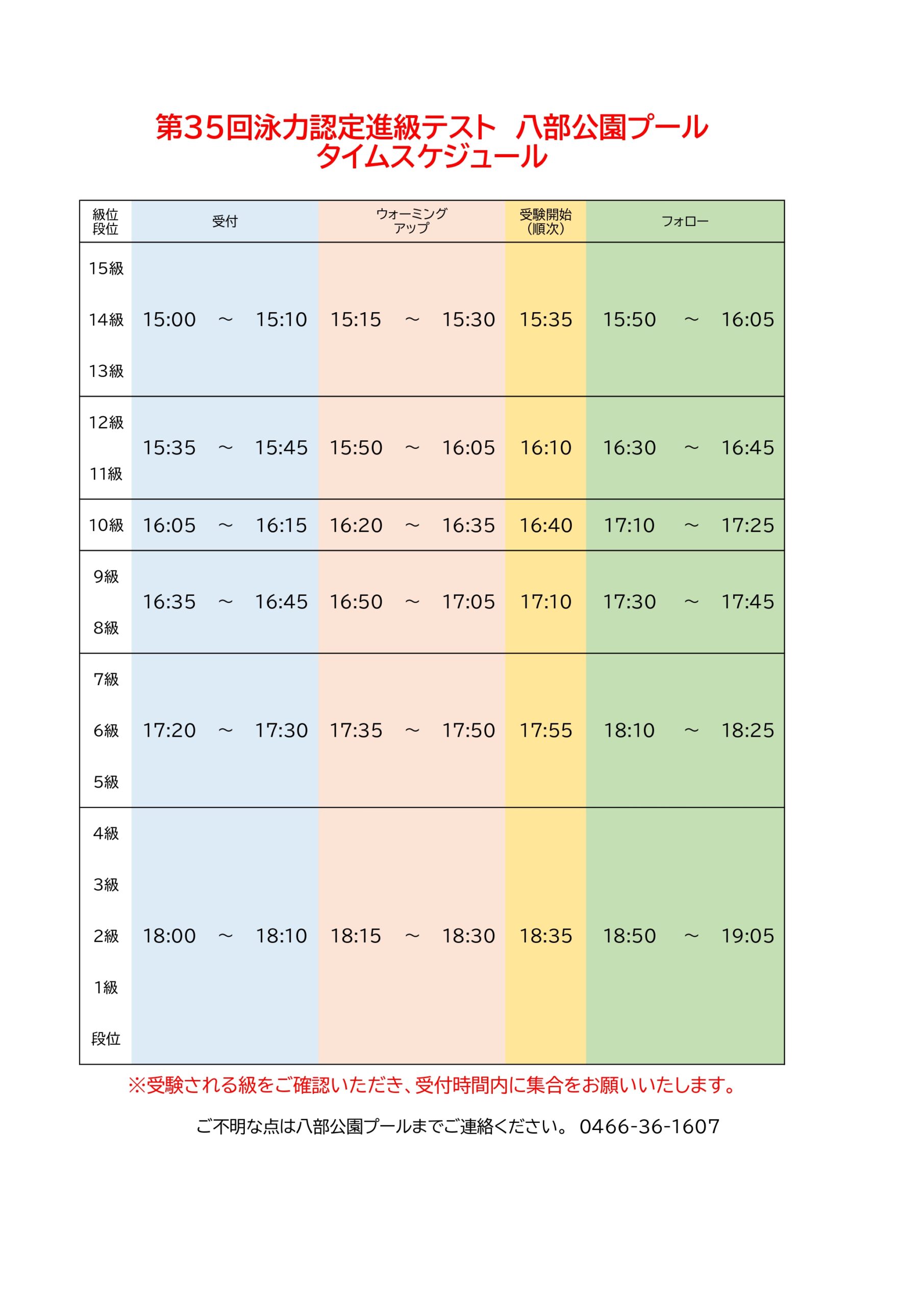 第35回泳力認定進級テスト開催のお知らせ(八部公園プール)