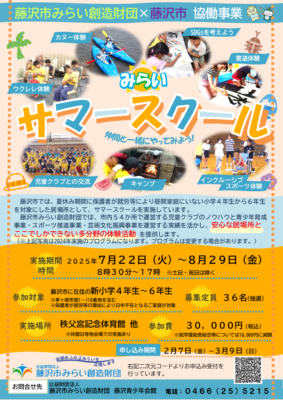 藤沢市では、夏休み期間に保護者が就労等により昼間家庭にいない小学4年生から6年生を対象にした居場所として、サマースクールを実施しています。