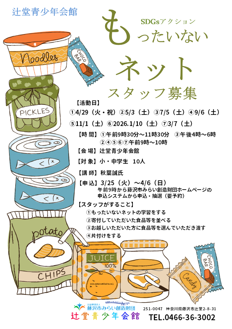 辻堂青少年会館「もったいないネット スタッフ募集 (全7回)」のお知らせ