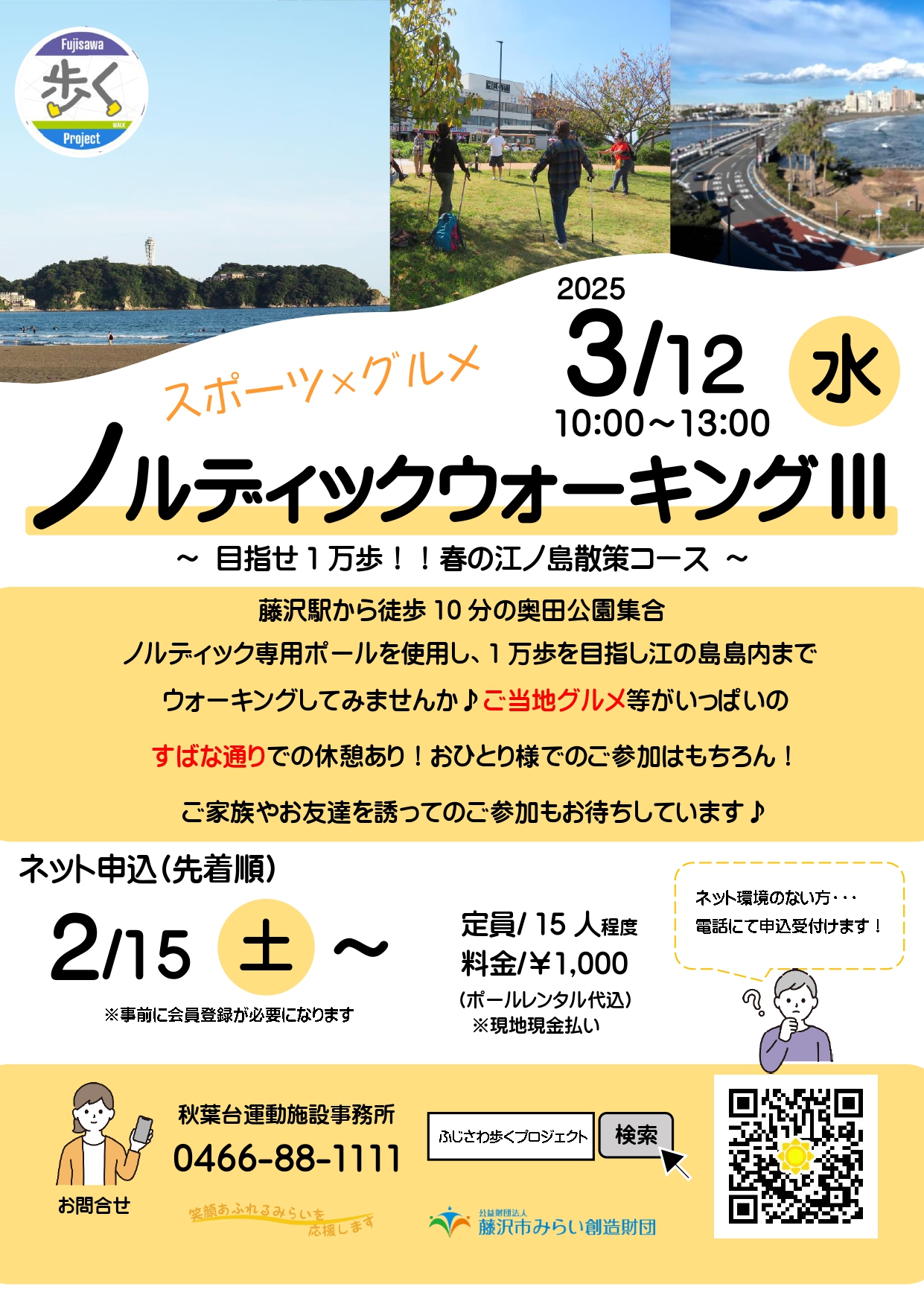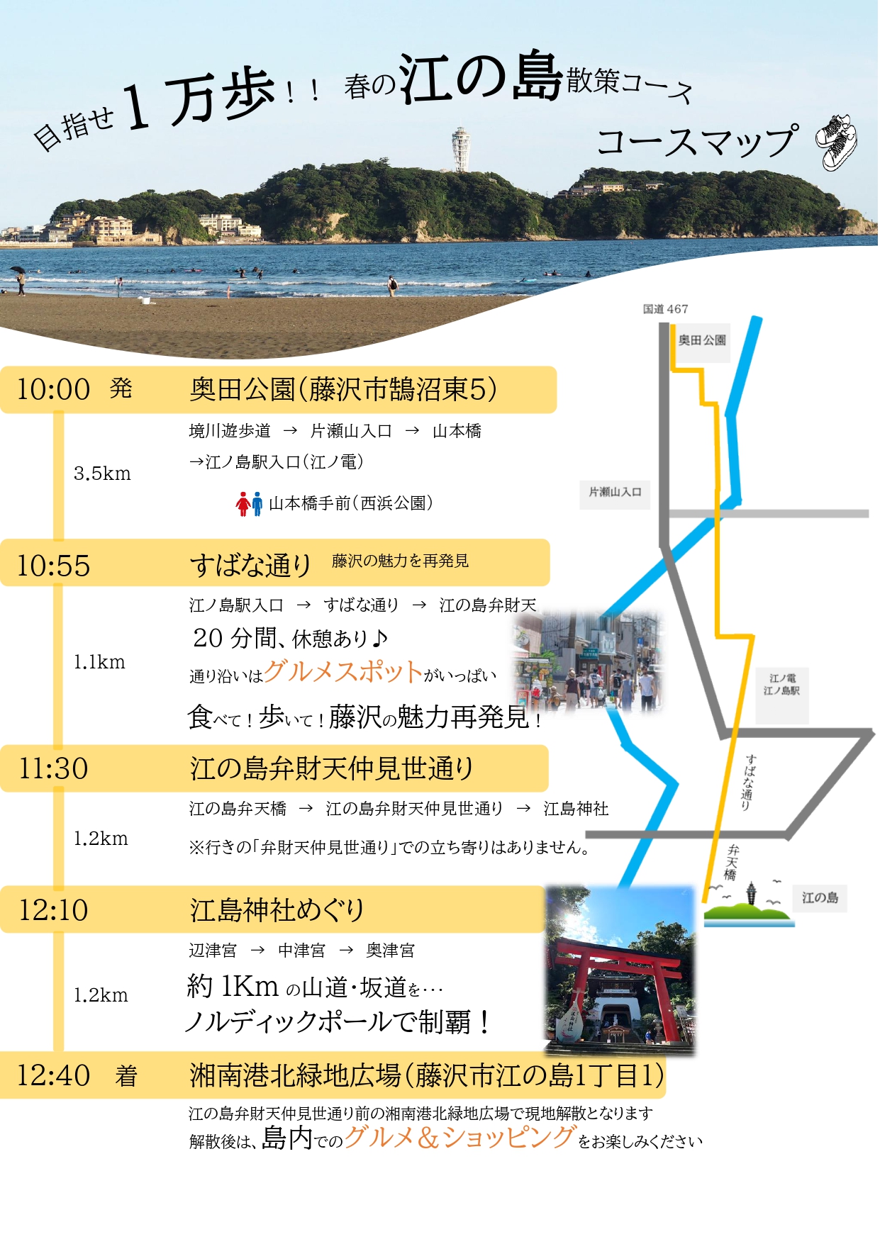【秋葉台文化体育館】ノルディックウォーキングⅢ~目指せ1万歩!春の江ノ島散策コース!~参加者募集