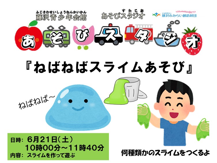 藤沢青少年会館「あそびスタジオ 6月 ねばねばスライムあそび」参加者募集