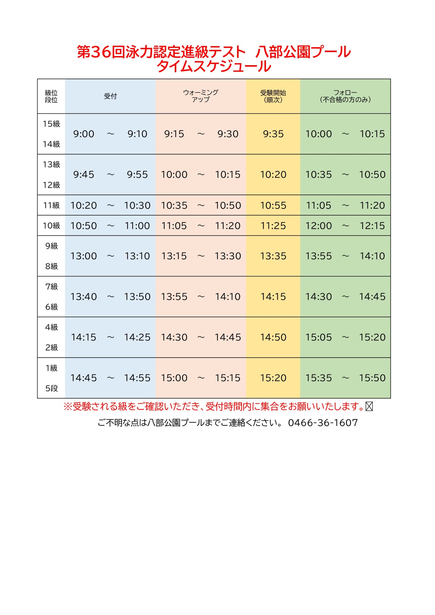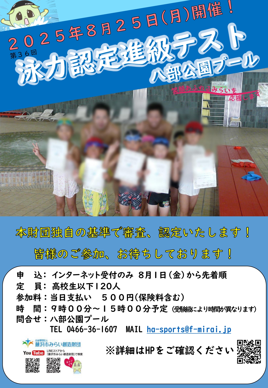 第36回泳力認定進級テスト開催のお知らせ(八部公園プール)