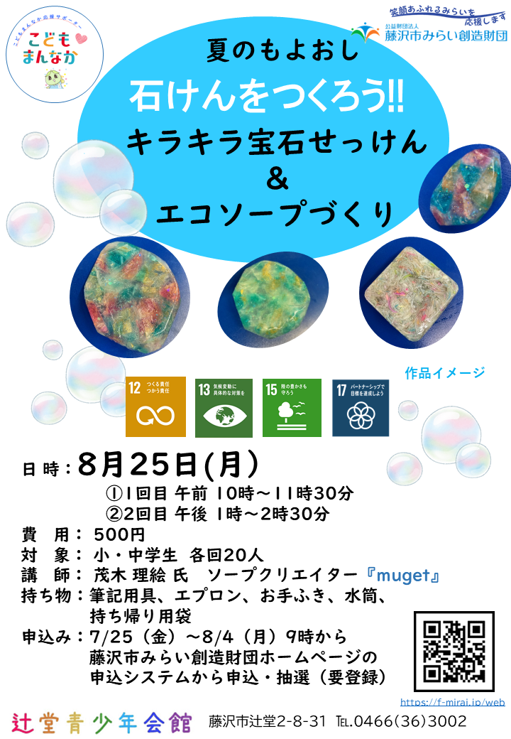 辻堂青少年会館 夏のもよおし「石けんをつくろう!!」のお知らせ