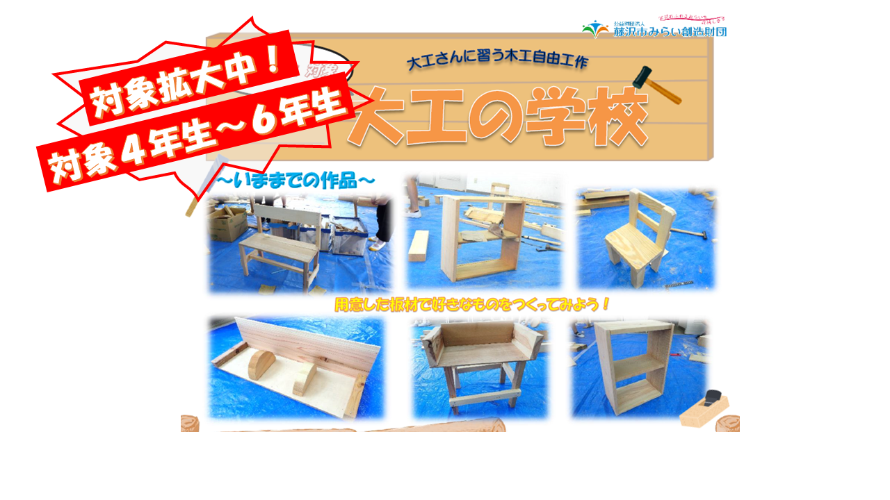 | 内容 | 大工さんに習う木工自由工作 |