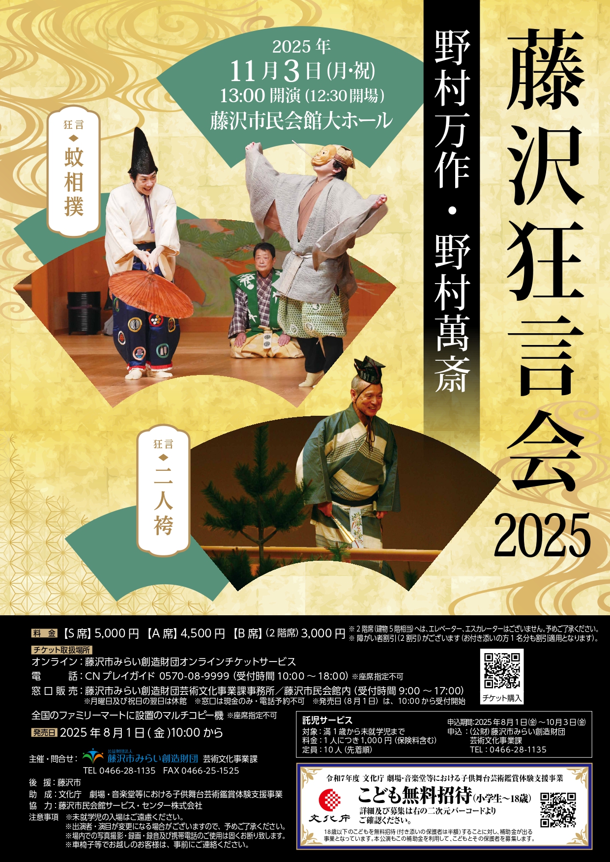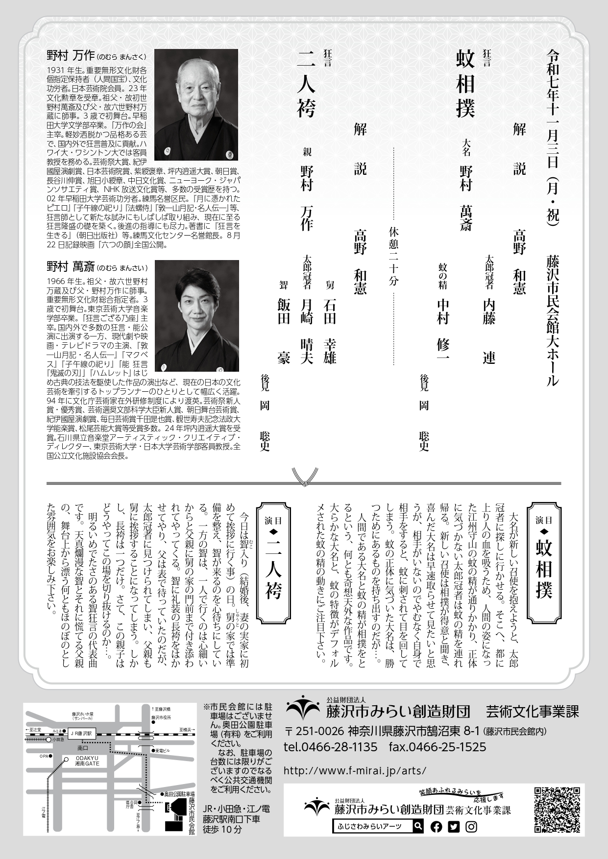 野村万作・野村萬斎 藤沢狂言会2025 「蚊相撲」「二人袴」
