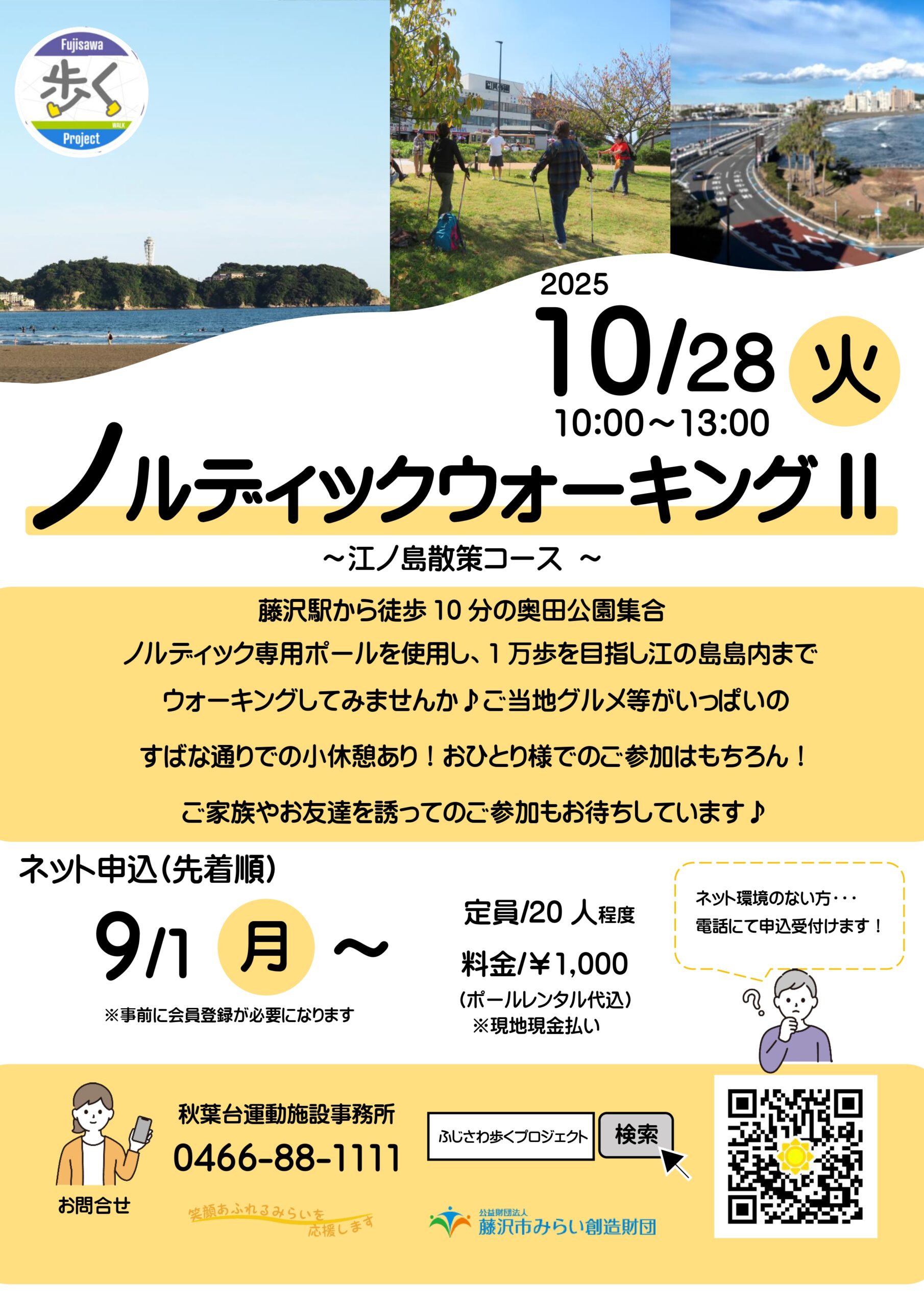 【秋葉台文化体育館】ノルディックウォーキングⅡ~江ノ島散策コース~参加者募集