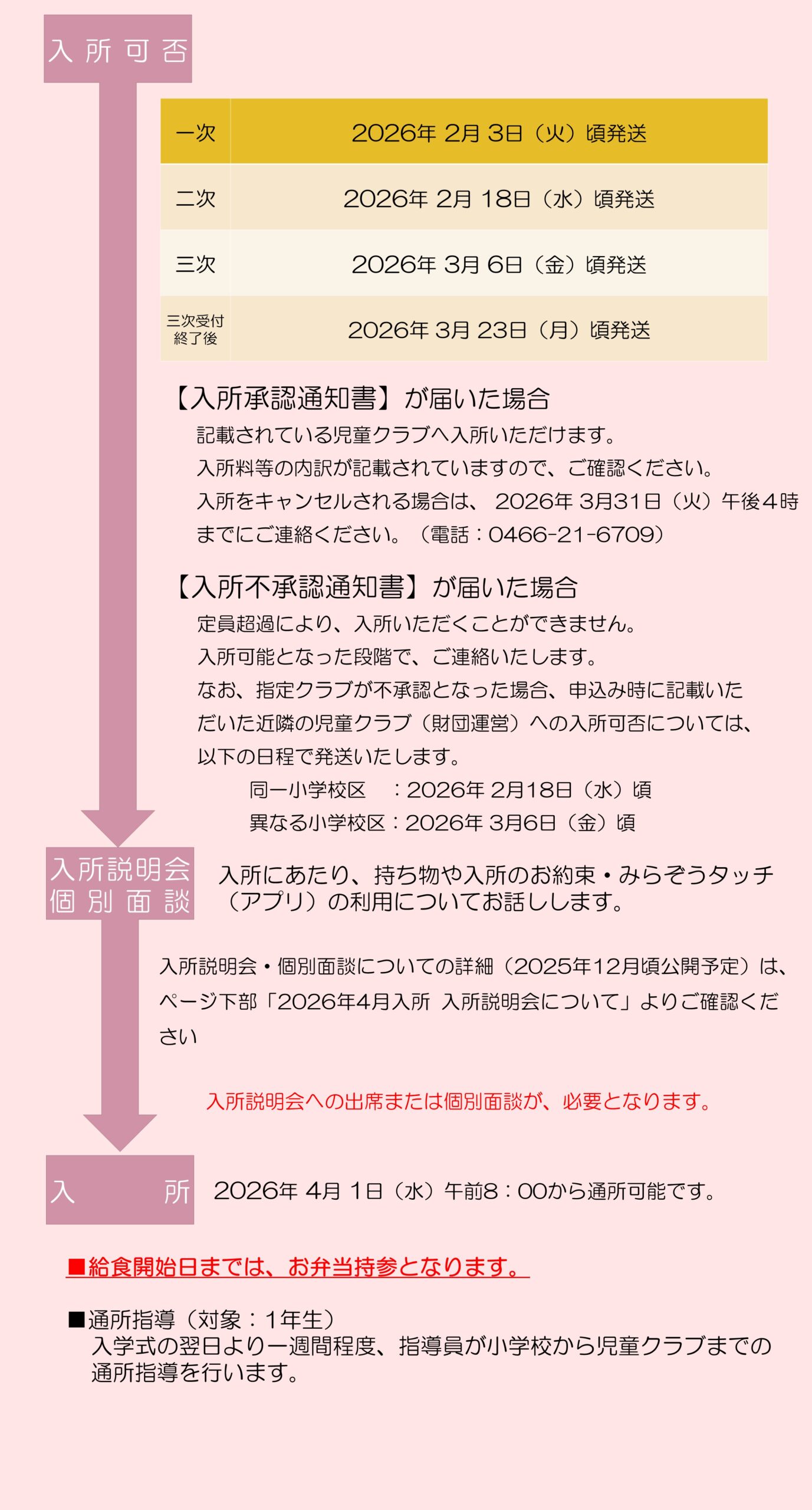 2025/10/01 児童クラブ 入所申込から入所まで(2026年度入所) 入所申込から入所までの流れについて カテゴリ 児童クラブ 前へ 2025年度 児童クラブの夏休み 次へ 児童クラブ交流会 より良いウェブサイトにするためにみなさまのご意見をお聞かせください 質問:このページの内容は参考になりましたか? 参考になったふつう参考にならなかった 質問:このページの内容はわかりやすかったですか? わかりやすかったふつうわかりにくかった 質問:このページは見つけやすかったですか? 見つけやすかったふつう見つけにくかった