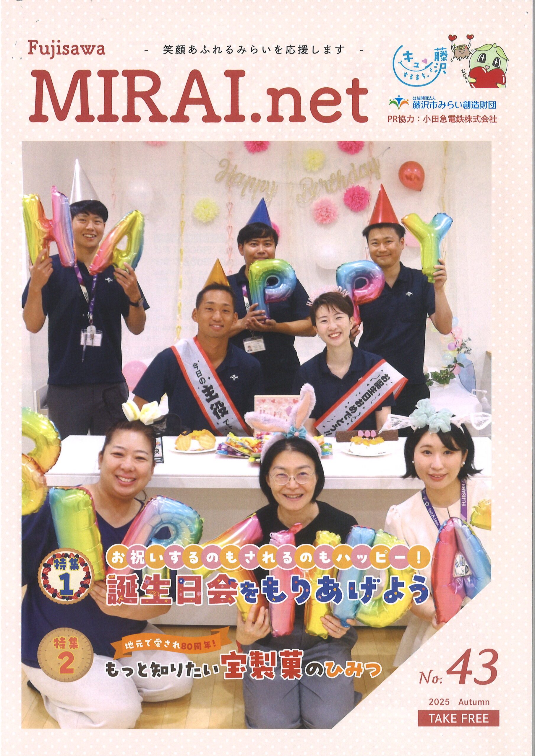 2025/10/02 広報誌財団運営全般 Fujisawa MIRAI.net No.43 特集1「お祝いするのもされるのもハッピー! 誕生日会をもりあげよう」 特集2「地元で愛され80周年! もっと知りたい宝製菓のひみつ」 ≫バックナンバー カテゴリ 広報誌財団運営全般 前へ 令和7年度第3回理事会開催のお知らせ 次へ 令和7年度第2回臨時評議員会のお知らせ より良いウェブサイトにするためにみなさまのご意見をお聞かせください 質問:このページの内容は参考になりましたか? 参考になったふつう参考にならなかった 質問:このページの内容はわかりやすかったですか? わかりやすかったふつうわかりにくかった 質問:このページは見つけやすかったですか? 見つけやすかったふつう見つけにくかった