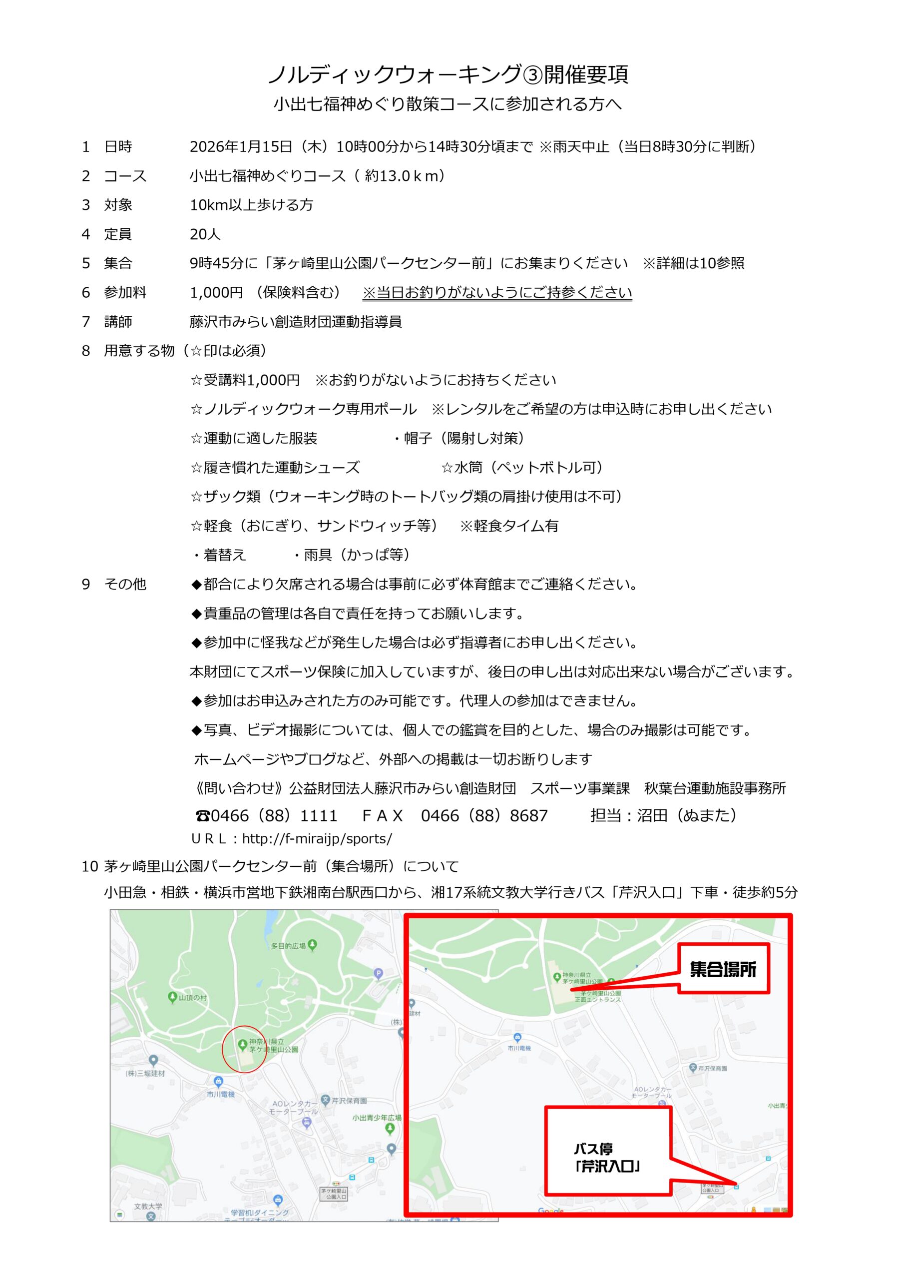 【秋葉台文化体育館】ノルディックウォーキングⅢ参加者募集
