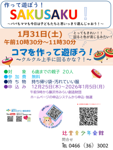 辻堂青少年会館「作って遊ぼう!SAKUSAKU!」1月開催のお知らせ