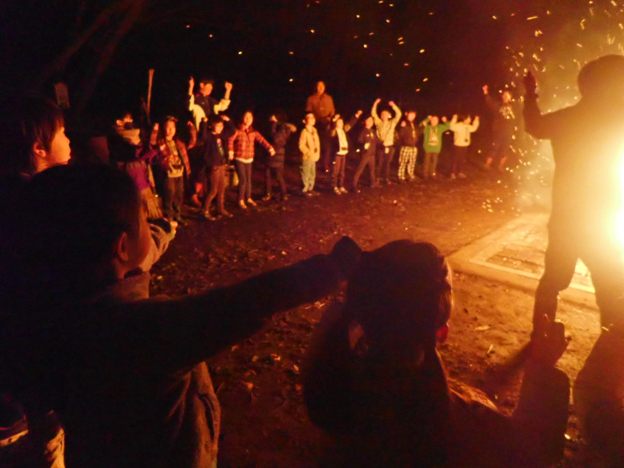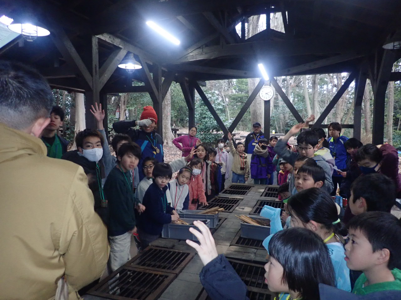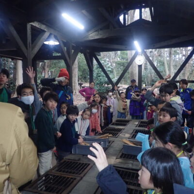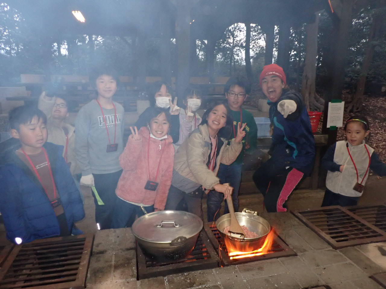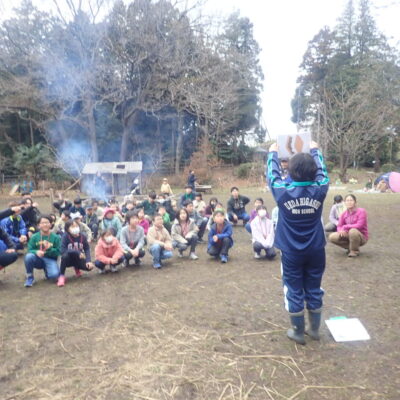 森の春(自然)探し、野外炊事、キャンプファイア、グループワーク等の活動
