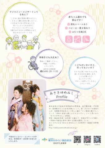 東京芸術大学音楽学部邦楽科の同期生、金子朋沐枝・坪井智子・設楽聡子による女性邦楽ユニット 箏・尺八のプロ奏者三人が、相模原市内在住という珍しい縁で「いい音楽を奏でたい」そして「邦楽を身近に親しんでもらいたい」という思いから『あさきゆめみし』を結成。流派(箏曲生田流・山田流)を超えて、伝統を守りつつも新しい邦楽の可能性を求めて様々な活動を展開している。オリジナルCD《あさきゆめみし》・《月夜野》・《風韻》好評発売中