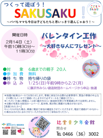辻堂青少年会館「つくって遊ぼう!SAKUSAKU!」2月開催のお知らせ