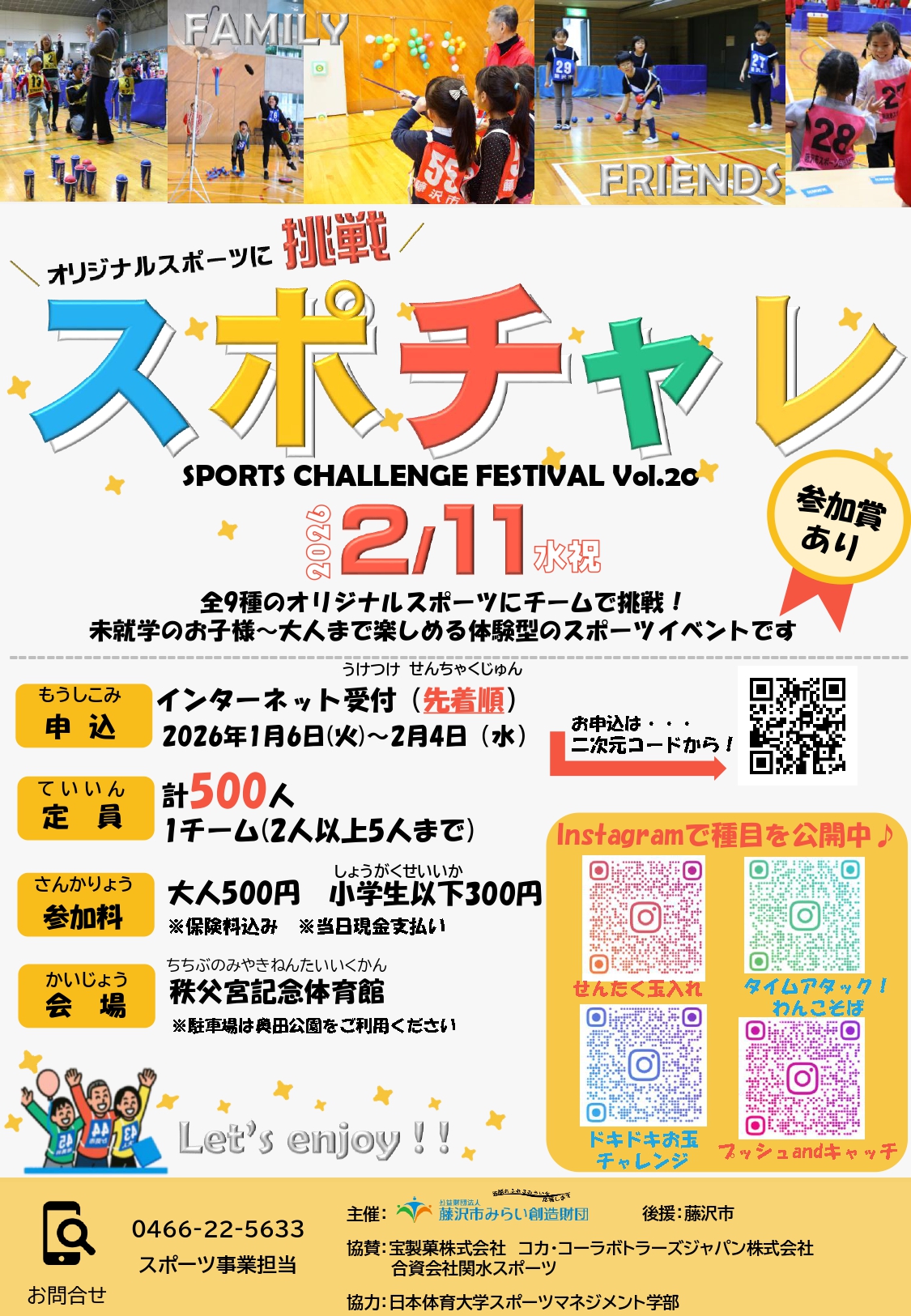 9種類のオリジナルスポーツに挑戦!!お友達や家族とチャレンジ!!