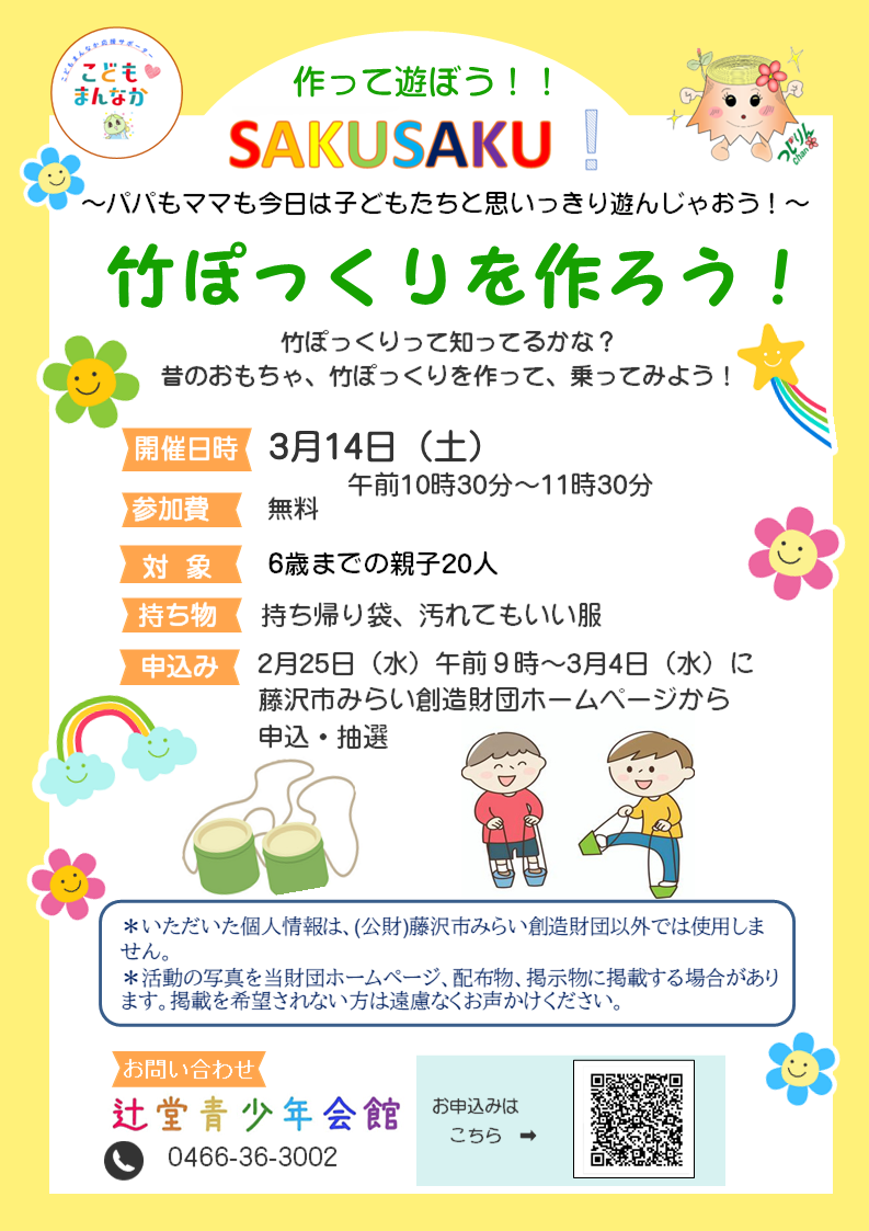 辻堂青少年会館「作って遊ぼう!SAKUSAKU!」3月開催のお知らせ