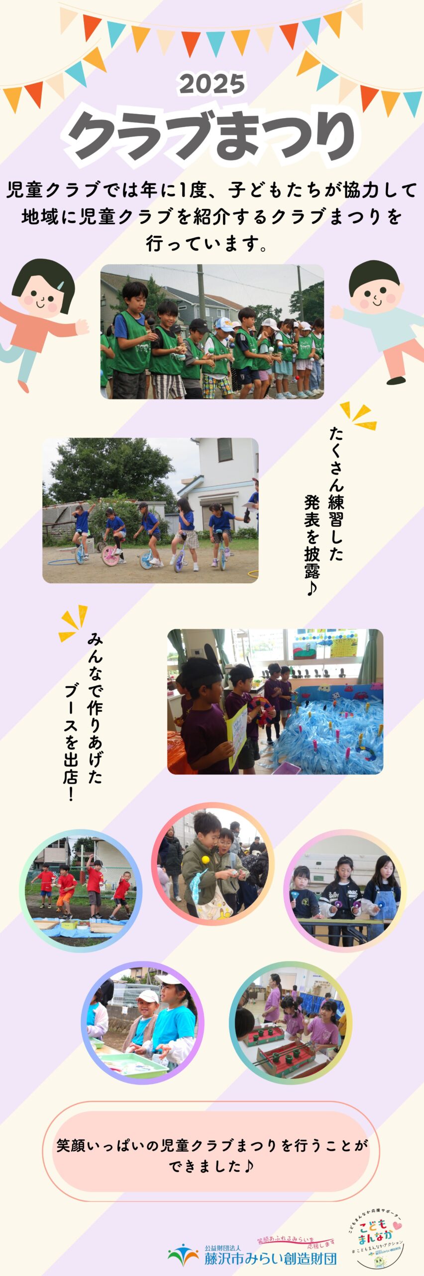 2026/03/01 児童クラブ 2025年度 児童クラブまつり カテゴリ 児童クラブ 前へ 2026年4月入所 入所説明会について 次へ 第116号 「明日も行きたい」と思える居場所を目指して より良いウェブサイトにするためにみなさまのご意見をお聞かせください 質問:このページの内容は参考になりましたか? 参考になったふつう参考にならなかった 質問:このページの内容はわかりやすかったですか? わかりやすかったふつうわかりにくかった 質問:このページは見つけやすかったですか? 見つけやすかったふつう見つけにくかった