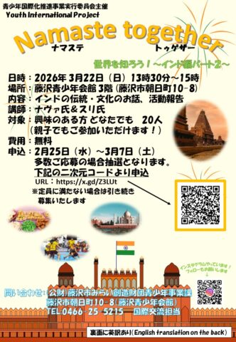 青少年国際化推進事業「世界を知ろう!~インド編パート2~」
