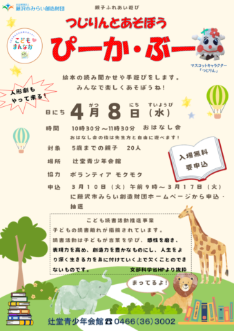 辻堂青少年会館「つじりんとあそぼう!ぴーか・ぶー4 月 」お知らせ