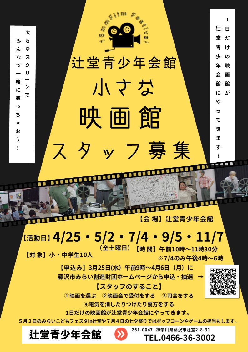 辻堂青少年会館「小さな映画館スタッフ募集(全5回)」のお知らせ