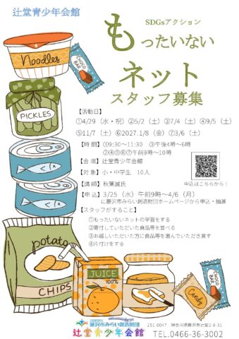 辻堂青少年会館「もったいないネット スタッフ募集!」のお知らせ