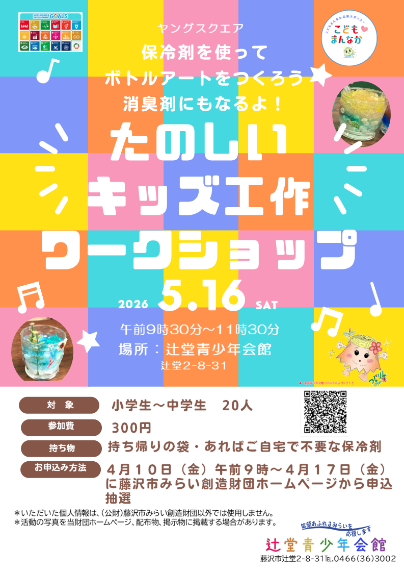 辻堂青少年会館「ヤングスクエア ~保冷剤を使ってボトルアート作り~ 」開催のお知らせ