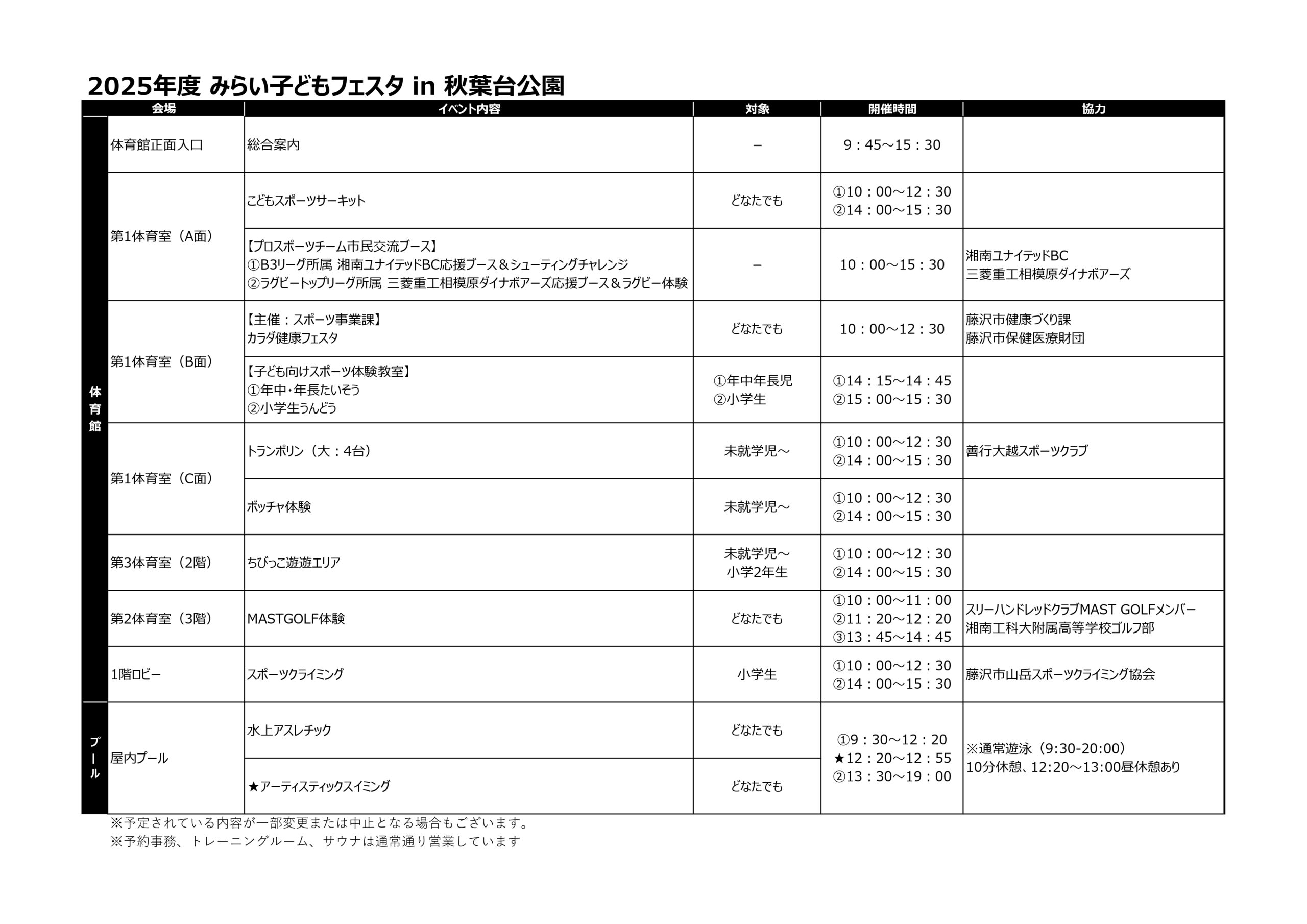 藤沢市スポーツ推進委員協議会、藤沢北警察署、藤沢北消防署、藤沢市保健医療財団、藤沢市ラグビー協会、藤沢市山岳スポーツクライミング協会、一般社団法人善行大越スポーツクラブ、合資会社関水スポーツ、湘南ドルフィンズ、MAST GOLF、湘南工科大学付属高等学校ゴルフ部、湘南ユナイテッドBC、横浜ランバイク協会