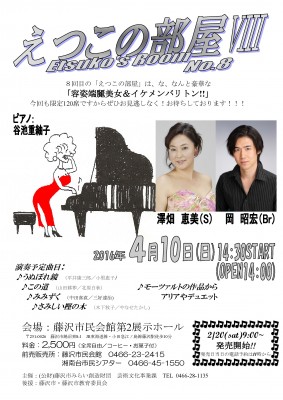 8回目の「えつこの部屋」は、な、なんと豪華な「容姿端麗美女&イケメンバリトン!!」今回も限定120席ですからぜひお見逃しなく!お待ちしております!!!