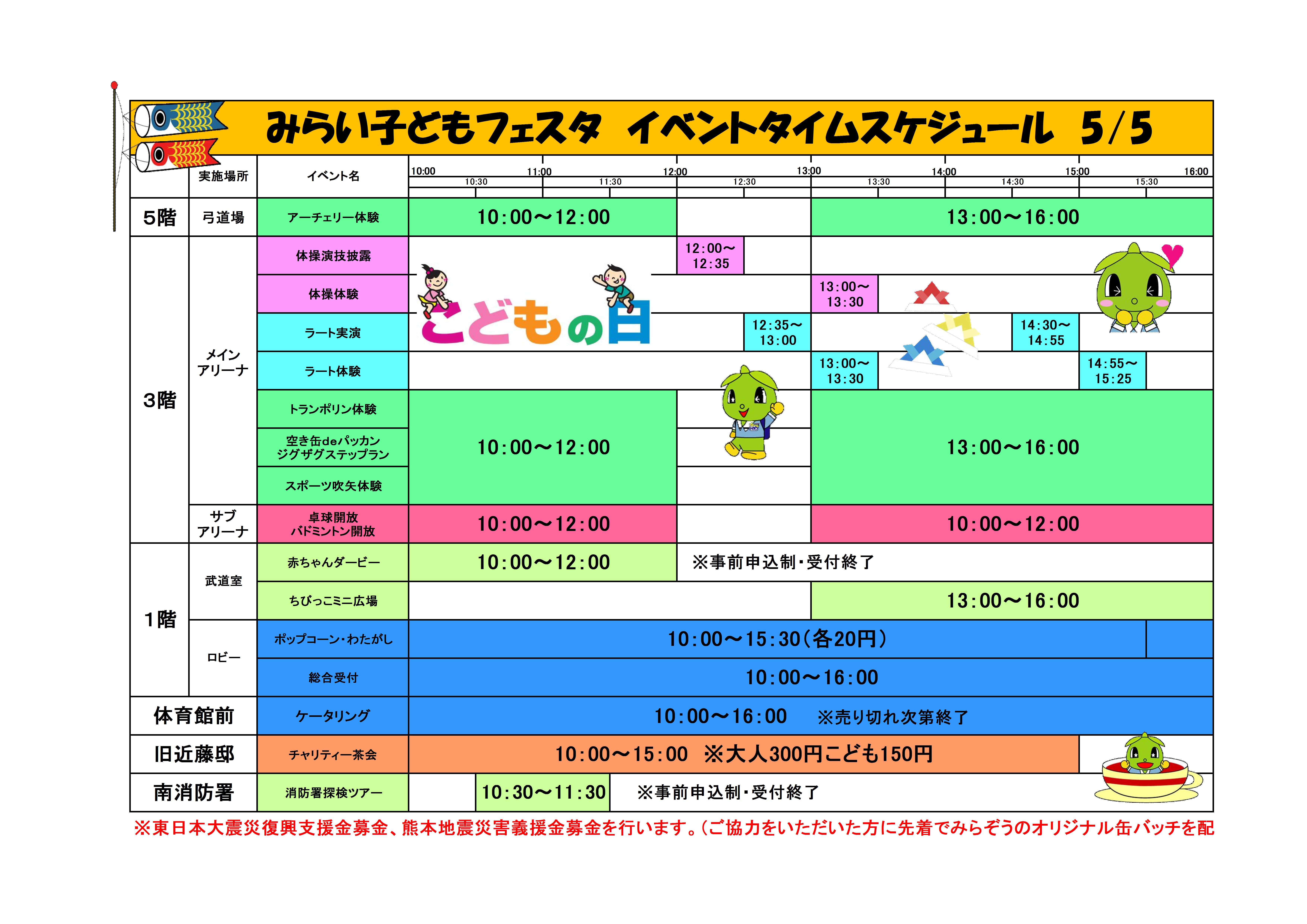 5.5 みらい子どもフェスタ タイムスケジュール決定(^^)/ 秩父宮記念体育館