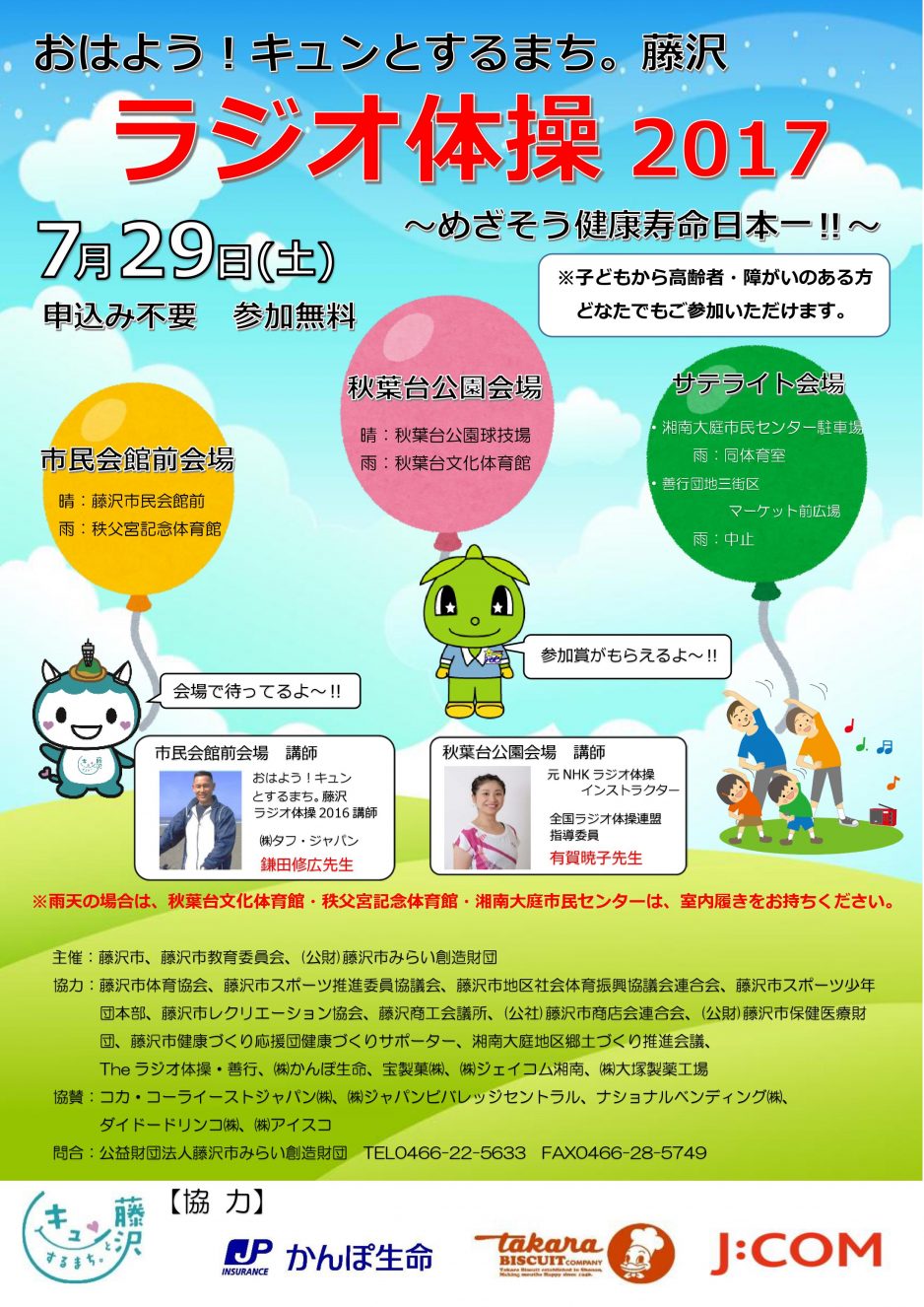 7月29日(土)午前6時30分から「おはよう!キュンとするまち。藤沢ラジオ体操2017」が行われます。