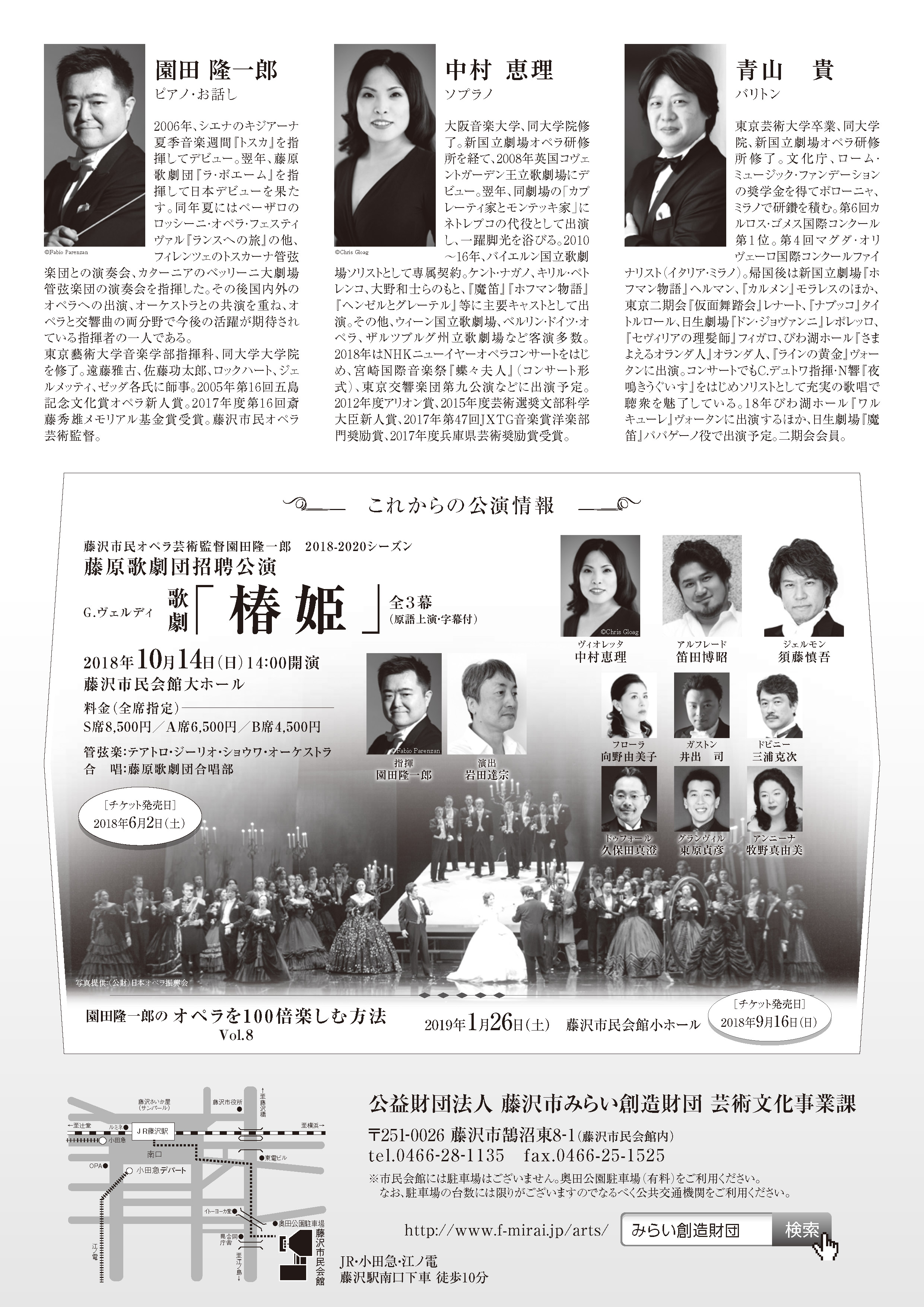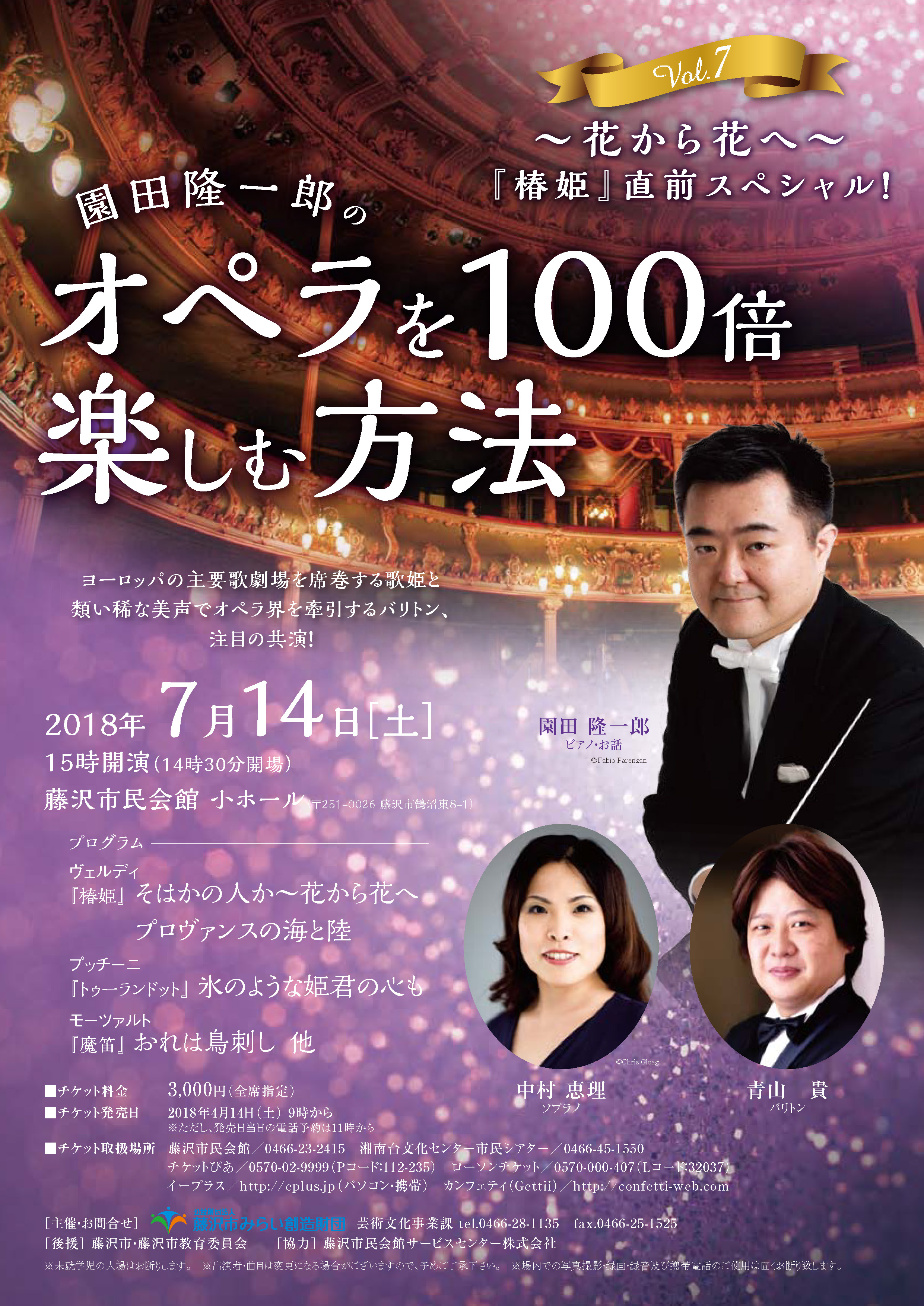 藤沢市民オペラ芸術監督で指揮者「園田隆一郎」がオペラ界大注目の歌手とともに、美しい歌声と、楽しいトークをお届けする人気シリーズも継続決定!!