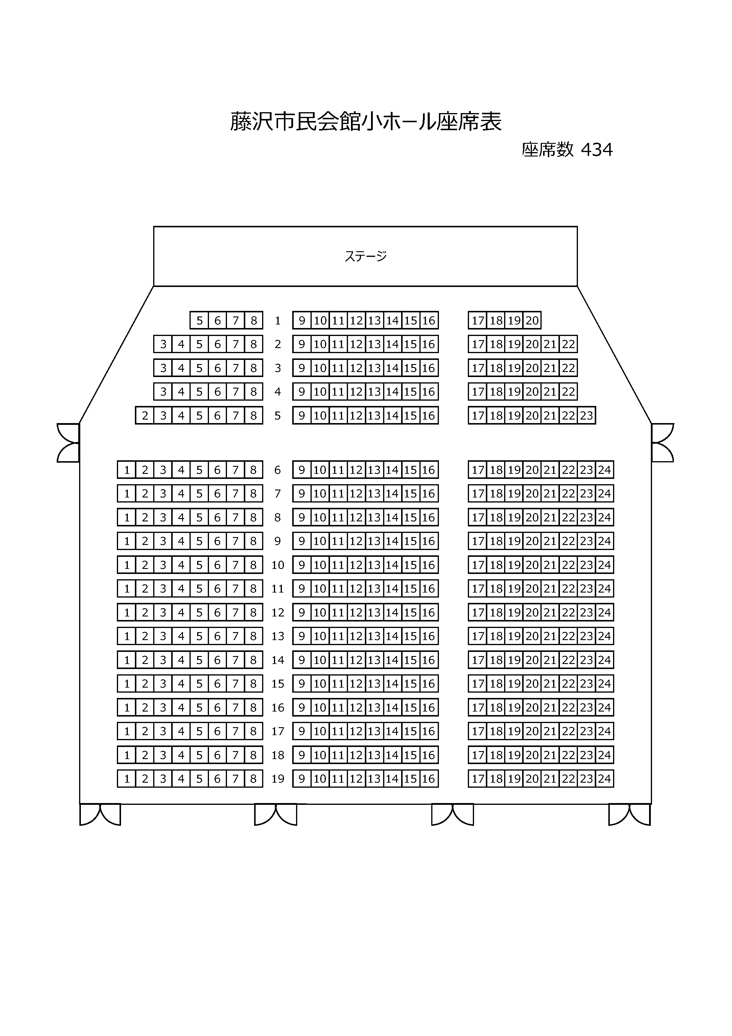 3,000円 (全席指定・税込) 藤沢市民会館小ホール座席表