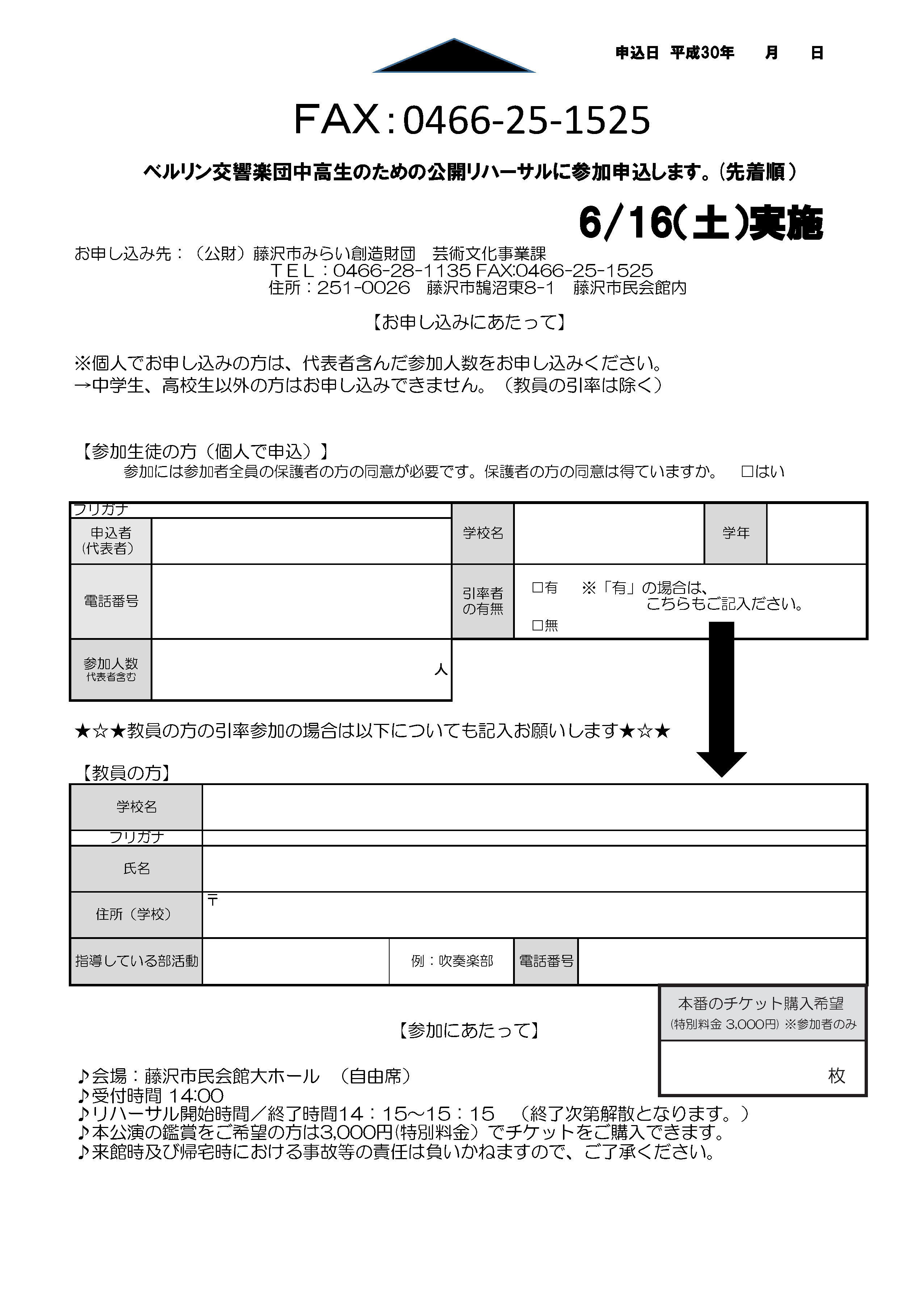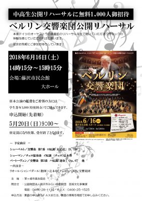 【ベルリン交響楽団】中高学生公開リハーサルに無料1,000人御招待!!
