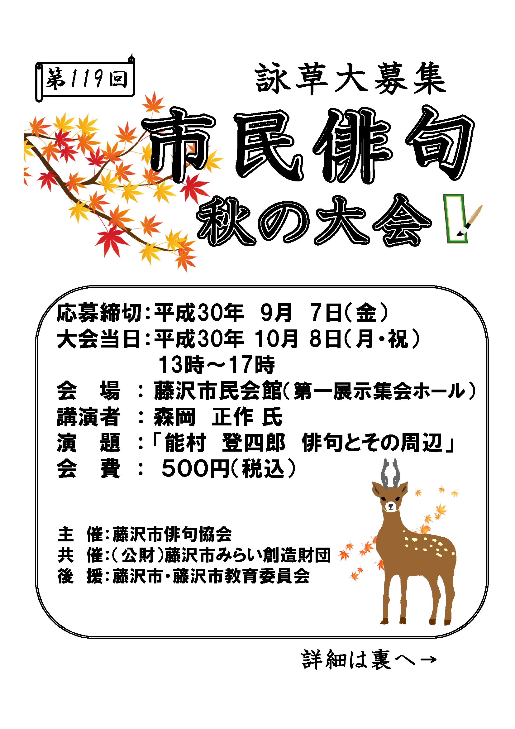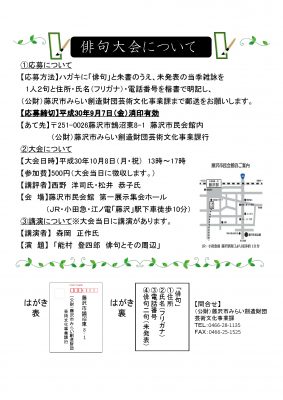 平成30年度 市民俳句 秋の大会 開催のお知らせ及び詠草募集について