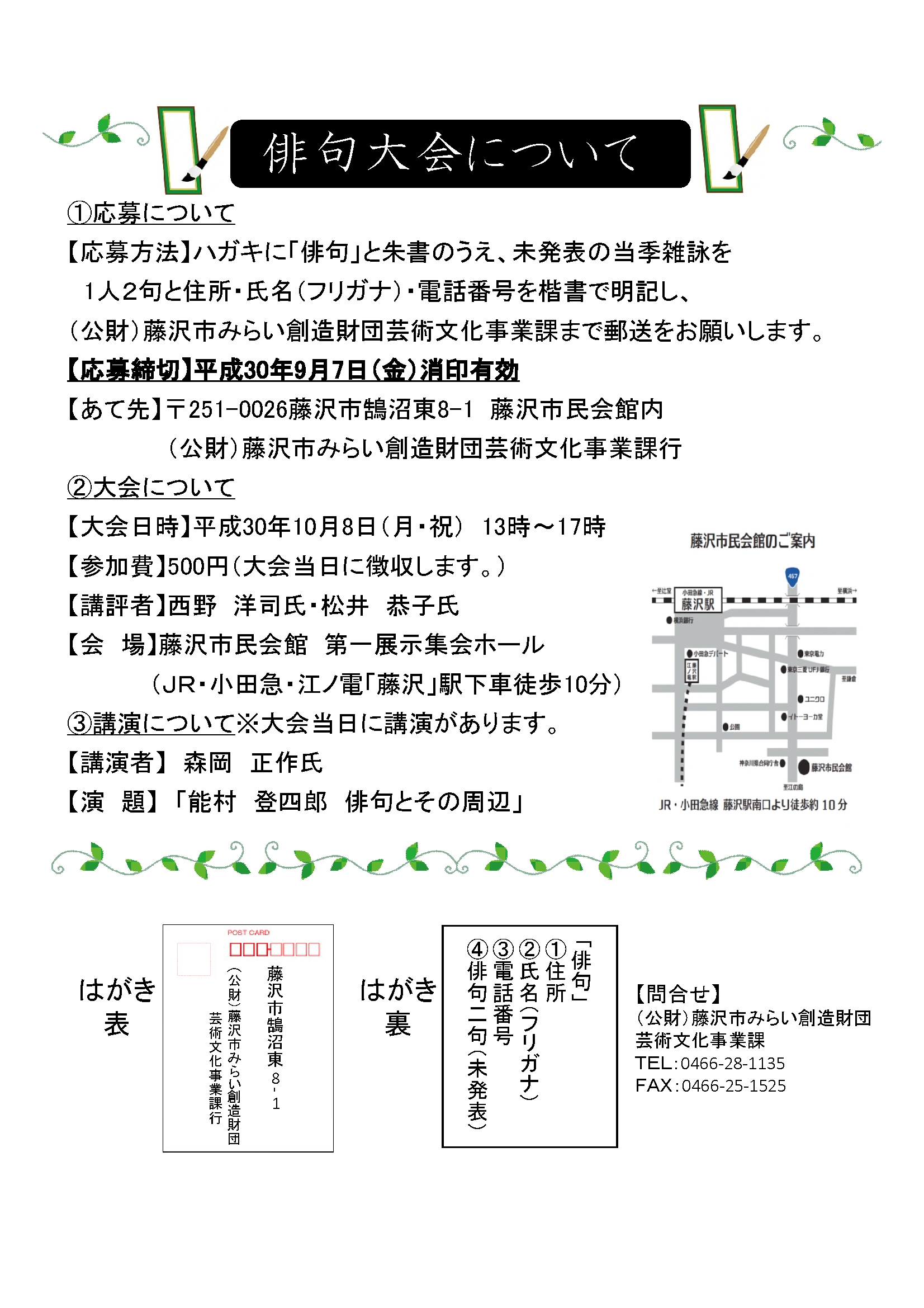 「藤沢市民俳句大会」係 迄