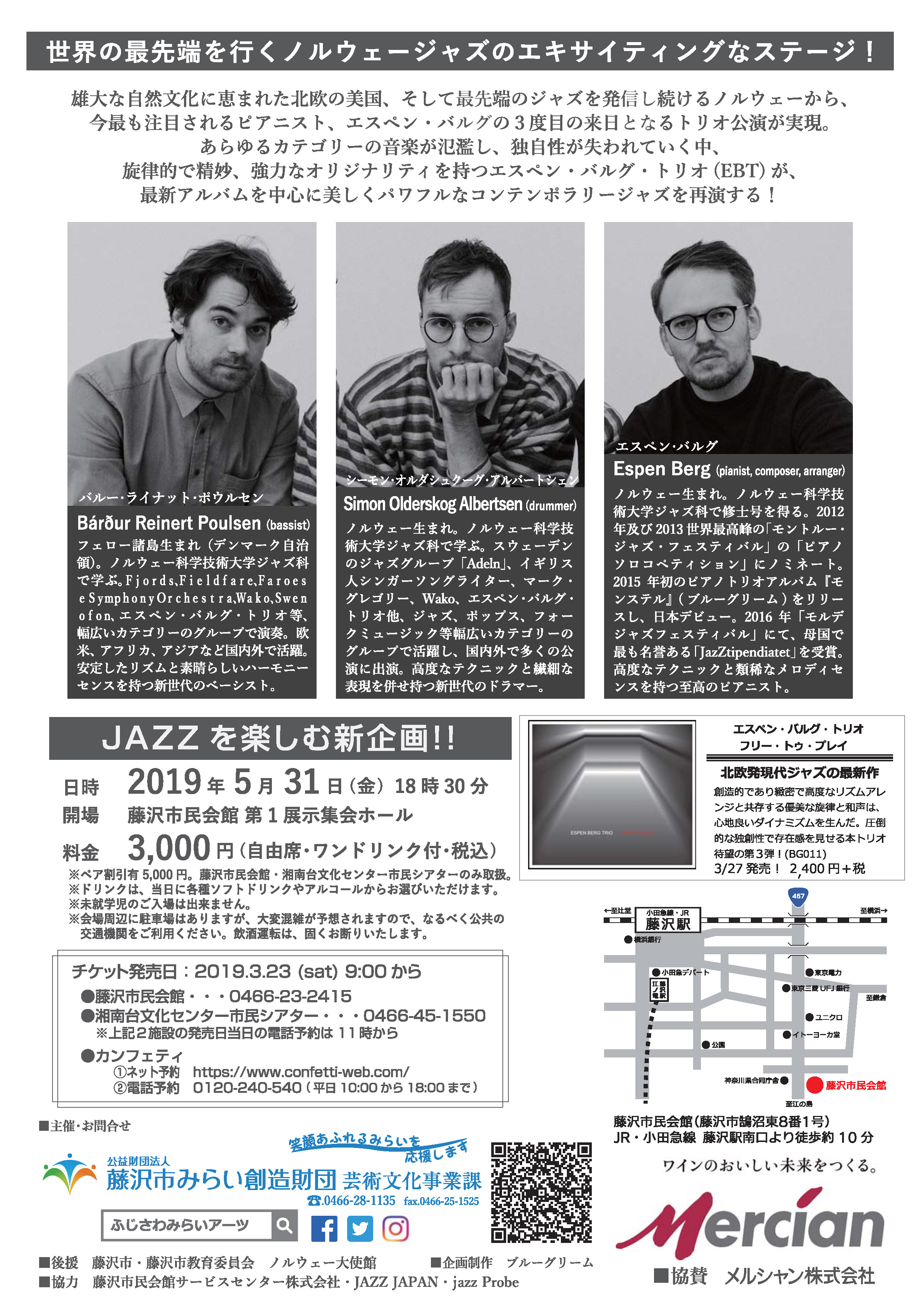 エスペン・バルグ・トリオ ジャパン・ツアー2019 ~北欧の透明な時を求めて~