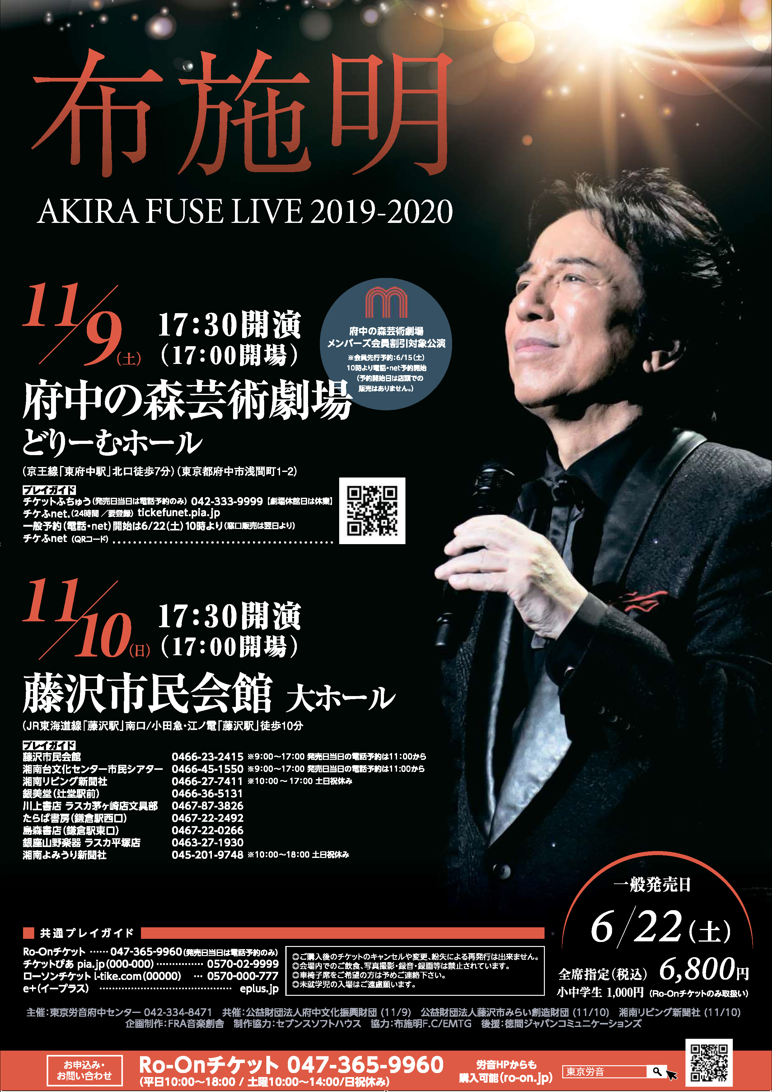 | 藤沢市民会館 | 0466-23-2415 (受付時間 9:00-17:00) ※発売日当日の電話予約は、11時から |