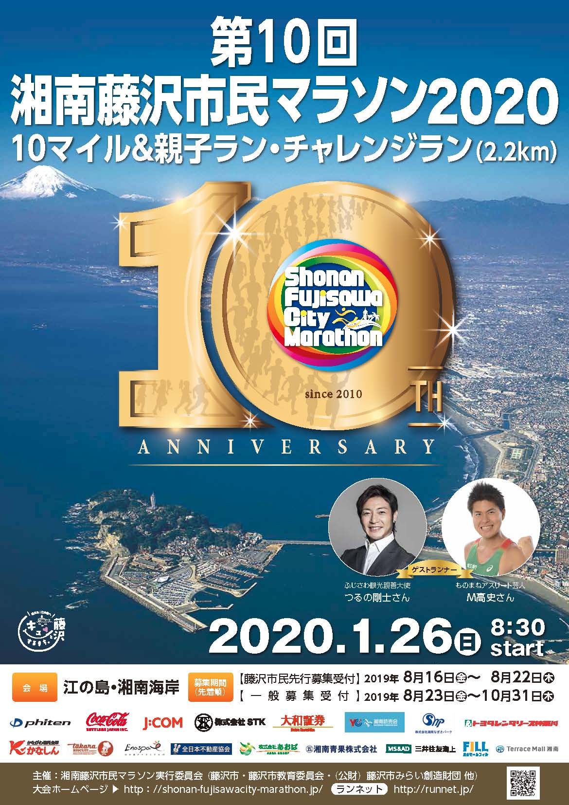 今年も2020年1月26日(日)に開催する「第10回湘南藤沢市民マラソン2020」大会の参加者募集を下記の日程で開始いたします。