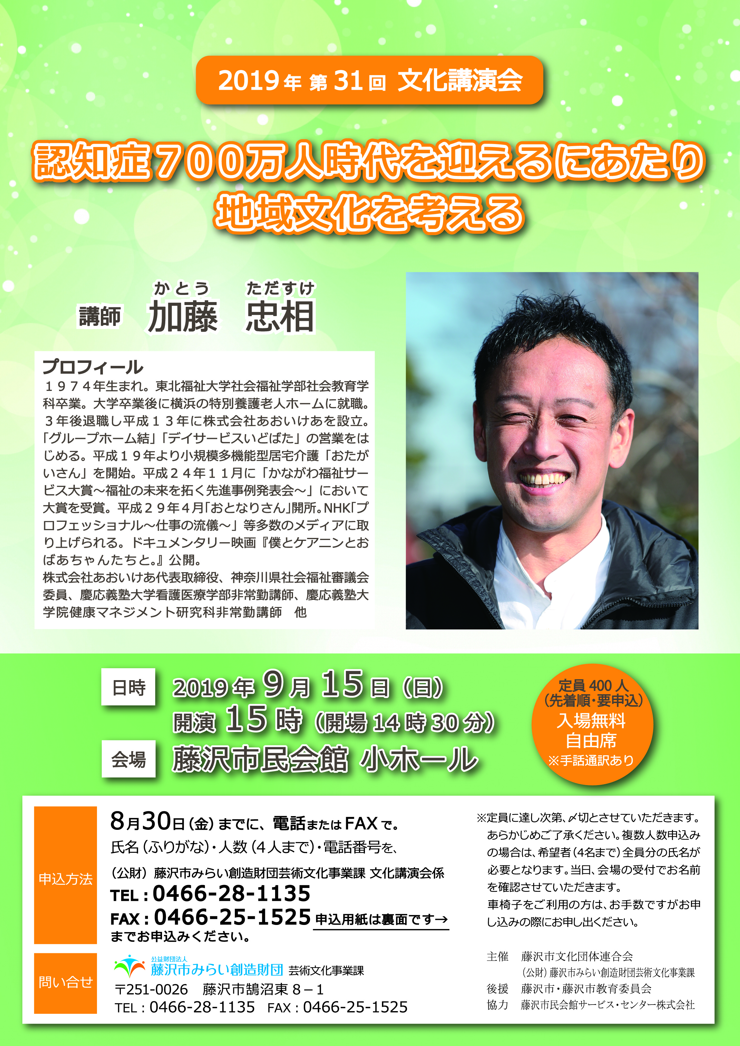 公益財団法人藤沢市みらい創造財団 芸術文化事業課 文化講演会係