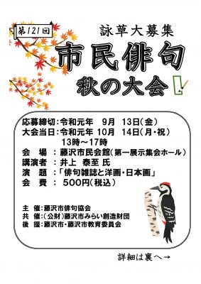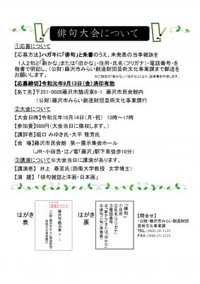令和年度 市民俳句 秋の大会開催のお知らせ及び詠草募集について