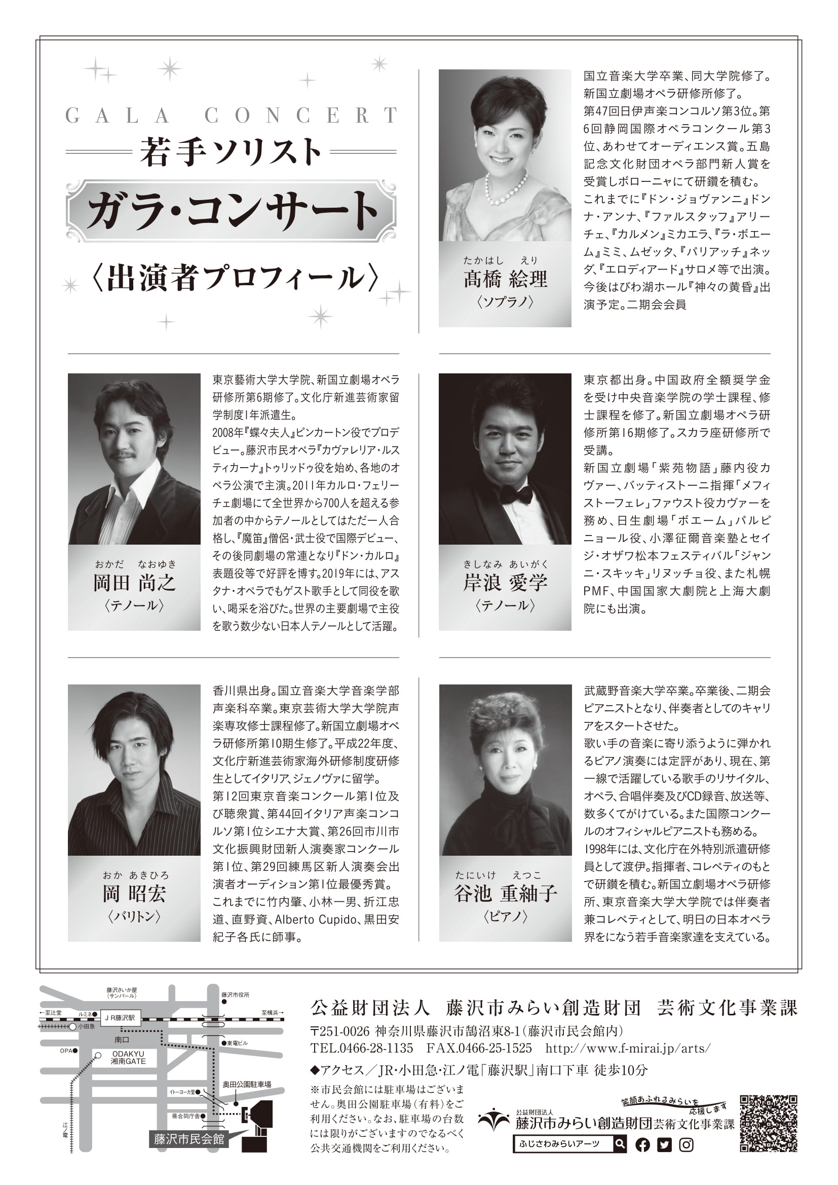 髙橋絵理(ソプラノ)/ 岡田尚之(テノール)/ 岸浪愛学(テノール)/ 岡昭宏(バリトン)/ 谷池重紬子(ピアノ)