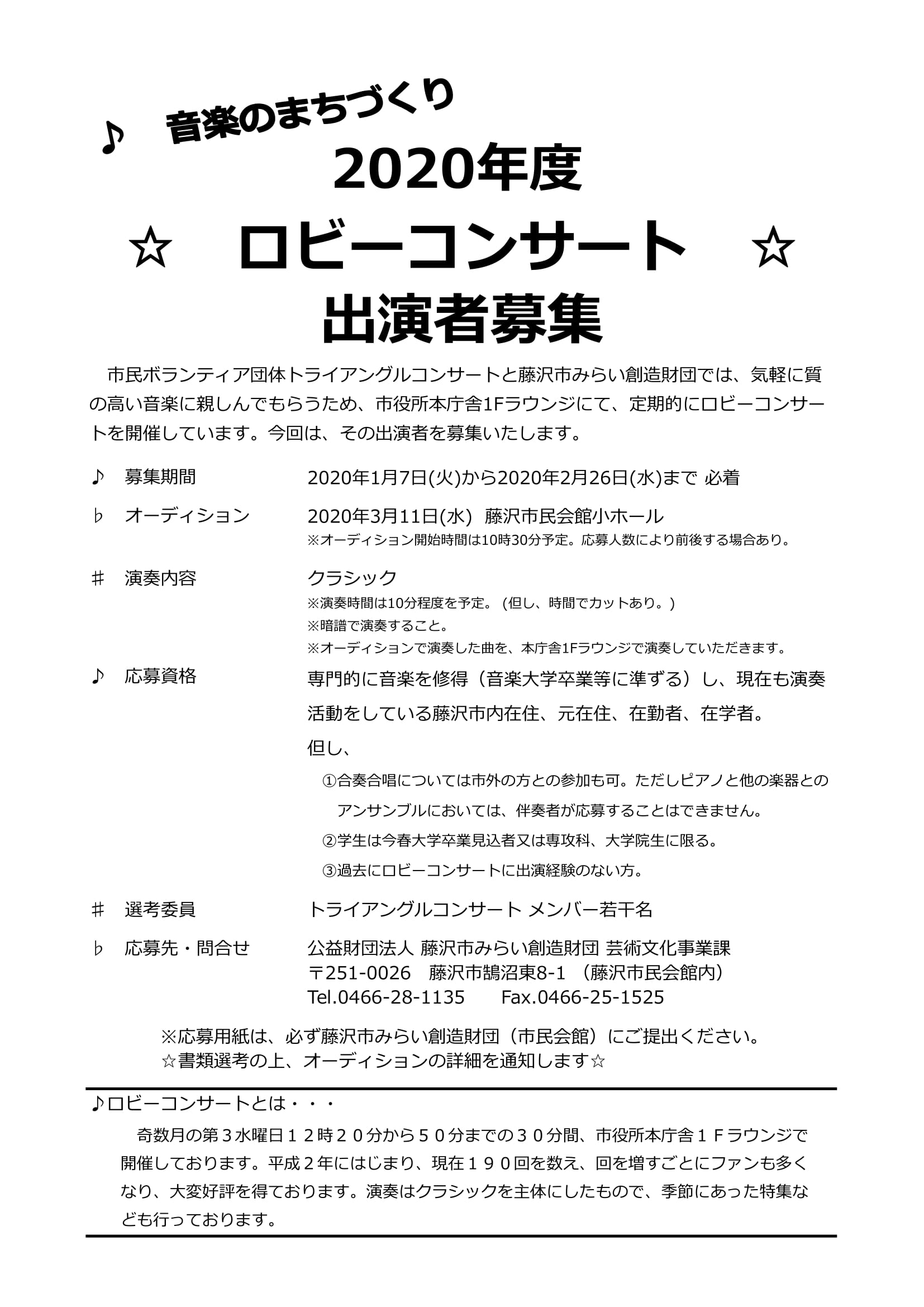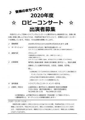 令和2年度(2020年度) ロビーコンサート出演者の募集について