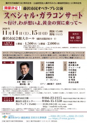 開催決定!藤沢市民オペラ・プレ公演「スペシャル・ガラコンサート ~行け、わが想いよ、黄金の翼に乗って~」