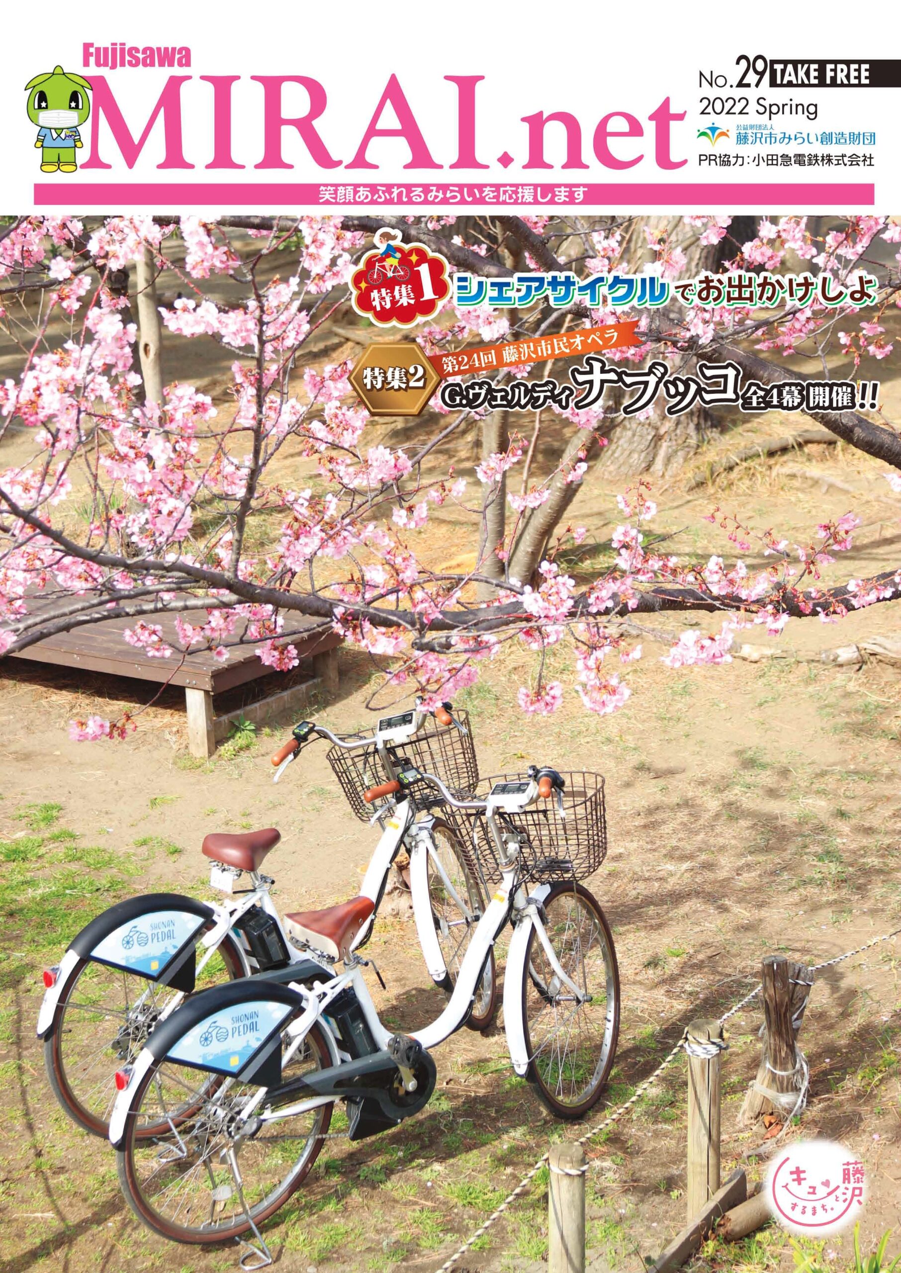 2022/04/01 広報誌財団運営全般 Fujisawa MIRAI.net No.29 特集1「シェアサイクルでお出かけしよ」 皆さんは、シャアサイクルを利用したことはありますか? 今号の特集では、利用方法から便利な使い方まで盛りだくさんです!! 特集2「第24回 市民オペラ ナブッコ全4幕開催!!」 中心となってリードしていただいた代表4名の方々にインタビューしました。 ≫バックナンバー カテゴリ 広報誌財団運営全般 前へ 自家用軽四輪貨物車(4WD軽トラック)物件供給契約書類一式ダウンロード 次へ Fujisawa MIRAI.net No.30 より良いウェブサイトにするためにみなさまのご意見をお聞かせください 質問:このページの内容は参考になりましたか? 参考になったふつう参考にならなかった 質問:このページの内容はわかりやすかったですか? わかりやすかったふつうわかりにくかった 質問:このページは見つけやすかったですか? 見つけやすかったふつう見つけにくかった