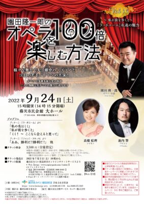 藤沢市民オペラ2022-2024シーズン芸術監督で指揮者の園田隆一郎が、オペラ界大注目の歌手とともに、美しい歌声と楽しいトークをお届けする人気シリーズ第15弾!!
