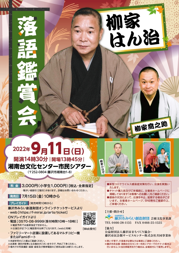 実力と人気を誇る「柳家はん治」「柳家喬之助」が湘南台にやってきます!
